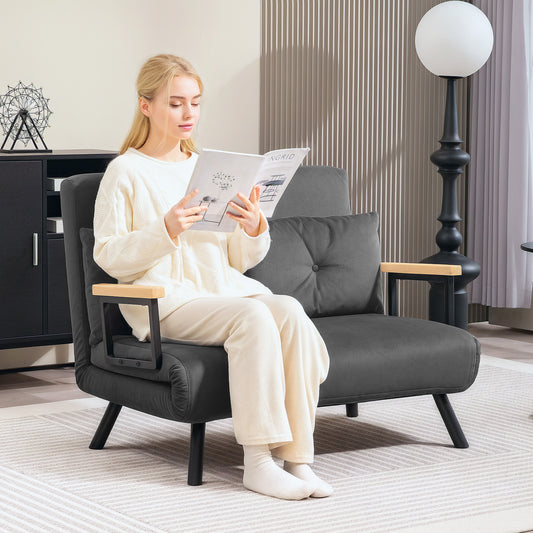 4-in-1 Pull Out Sleeper Chair Bed with Pockets, Charcoal Grey