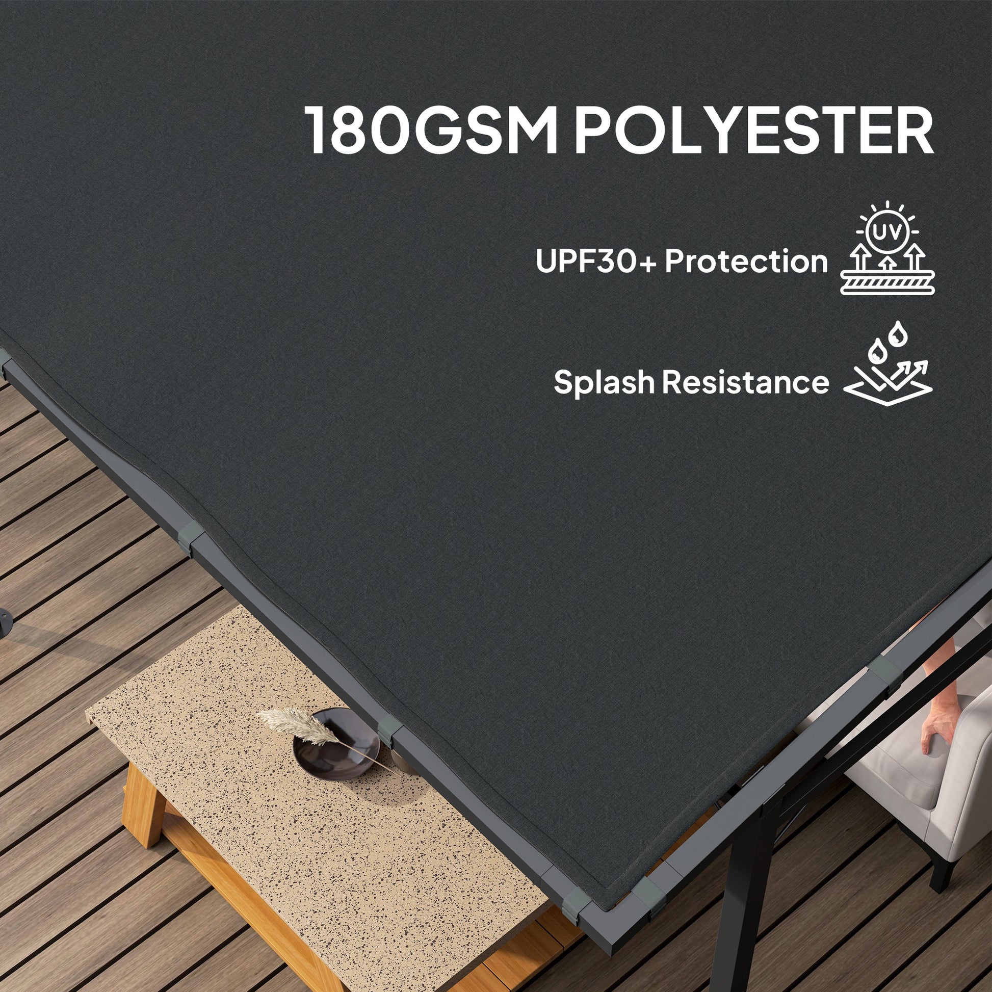 Transform your garden with the Outsunny Pergola Gazebo! Crafted with 180g/㎡ fabric featuring a PA coating, it resists fading and provides UPF30+ sun protection. This metal pergola, designed as a lean-to gazebo, fixes easily to any wall, blending indoor and outdoor spaces effortlessly. Whether you fancy a garden grill barrier or a cosy outdoor eating area, this pergola kit has you covered.Specifications