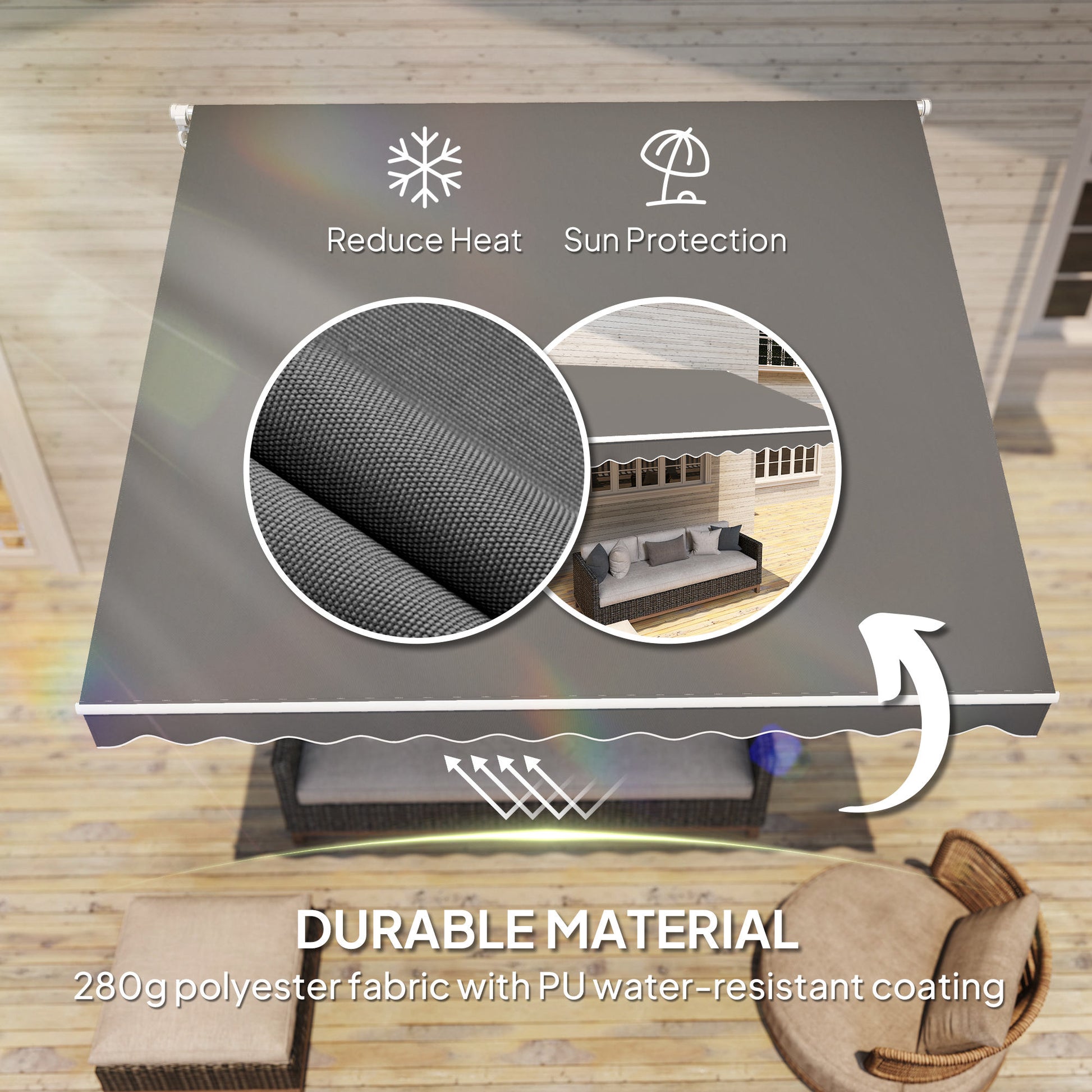 Featuring a thick sun-shielding canopy on an aluminium frame, this 2.95 x 2.5m garden awning from Outsunny provides sufficient shade for the season. Its manual design allows flexible setup above doors or windows and it easily mounts onto your preferred surface with all accessories included. Finished with a crank handle for easy operation, this patio canopy is great for enjoying the outdoors like never before.Specifications
