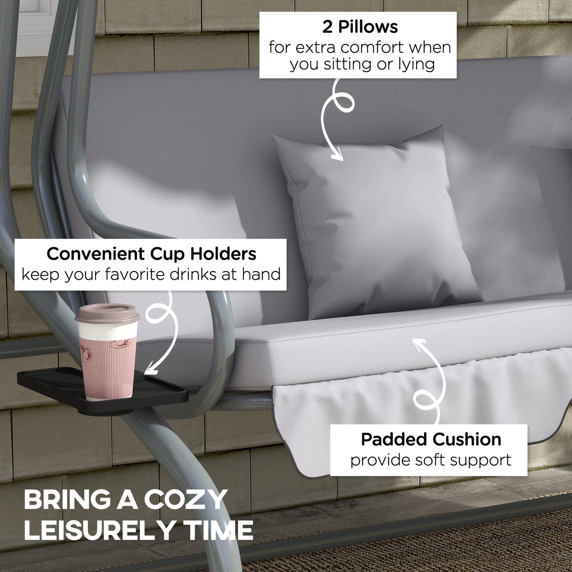 2-in-1 Garden Swing Chair for 3 Person w/ Adjustable Canopy, Grey