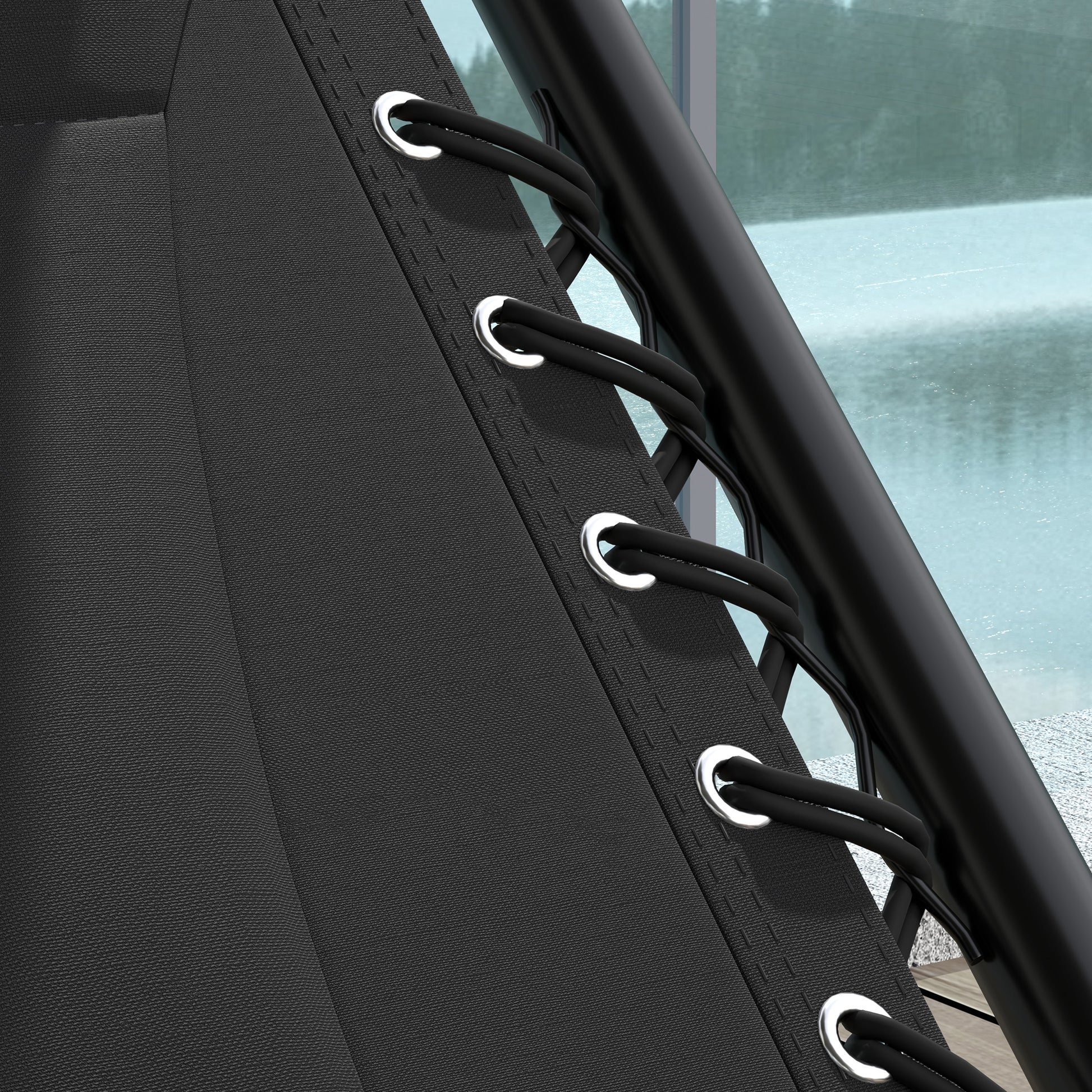 Let the day's stress drift away with this zero-gravity chair set from Outsunny. Its comfortable design evenly distributes your body weight to reduce back pressure and provides superior lumbar support as you sit. This piece of outdoor furniture allows you to relax while fully reclined to the most comfortable 'zero-gravity' position.Specifications