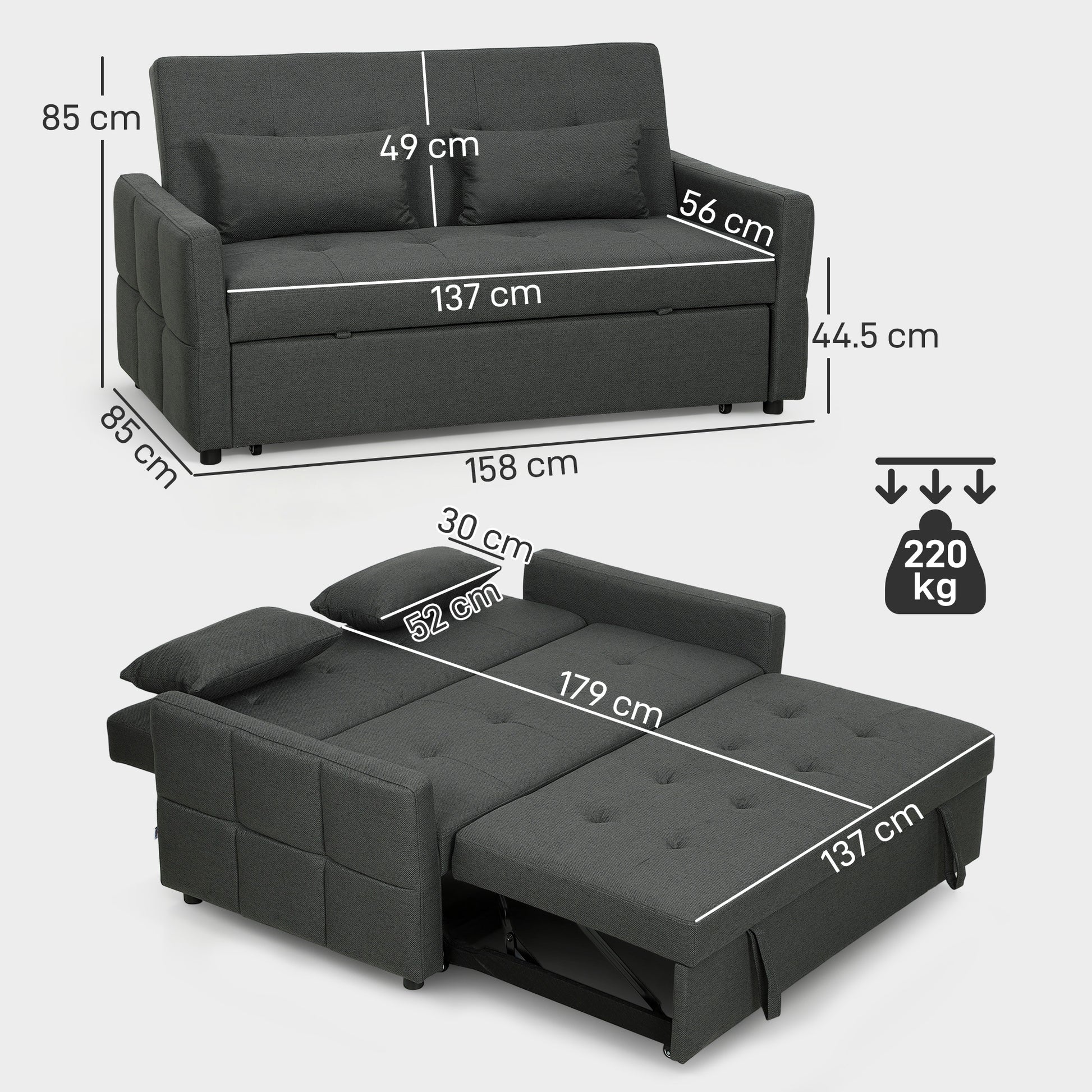 2 Seater Sofa Bed, Convertible Pull Out Bed Settee, Charcoal Grey