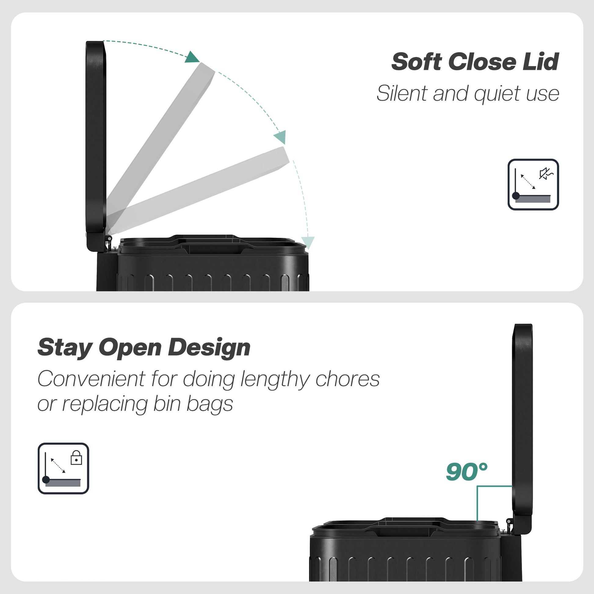 2 x 20L Double Rubbish Bin, Pedal Bin with Soft-Close Lid, Black