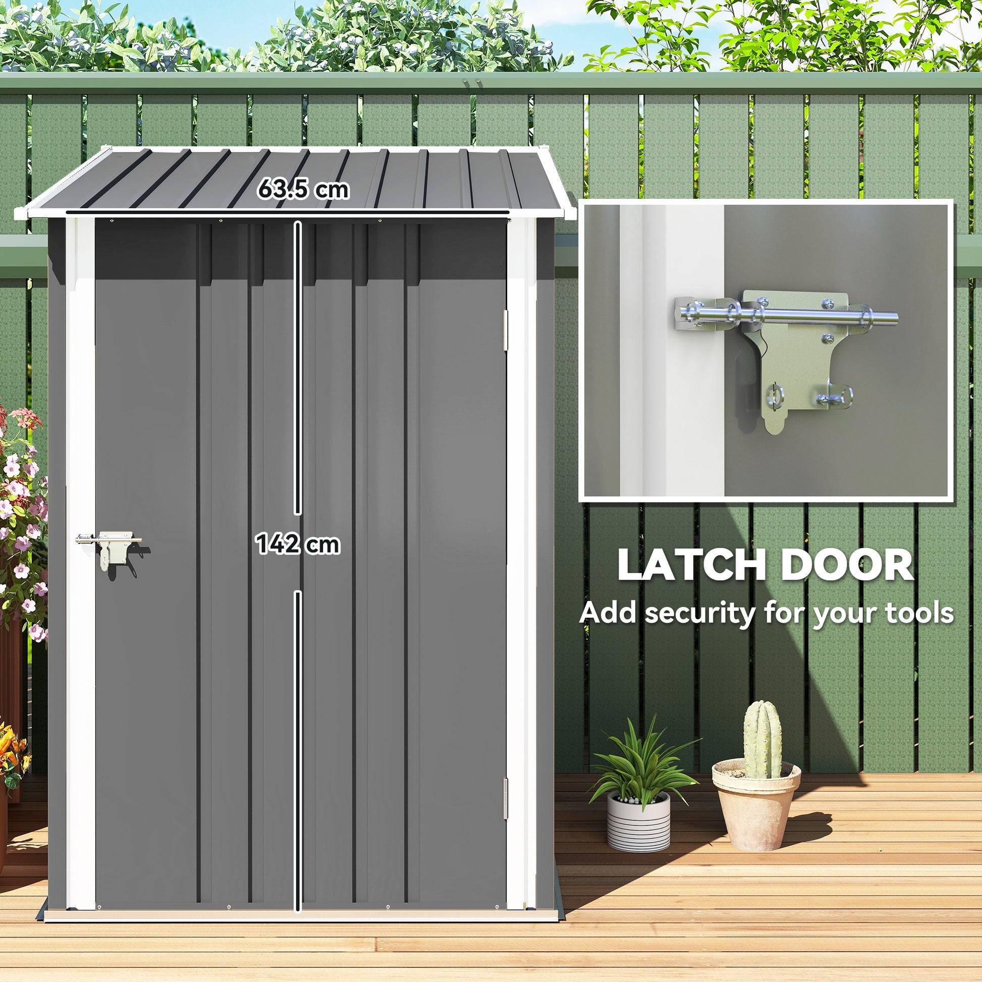 Add your outdoor storage space with the metal lean to shed. Made from galvanised steel with a corrugated finish, the garden tool shed offers robust protection for your inside contents. It's completely open inside, so you can store plenty - or even add your own shelving for organisation. A single door for access, fitted with a latch to keep it shut in place.Specifications