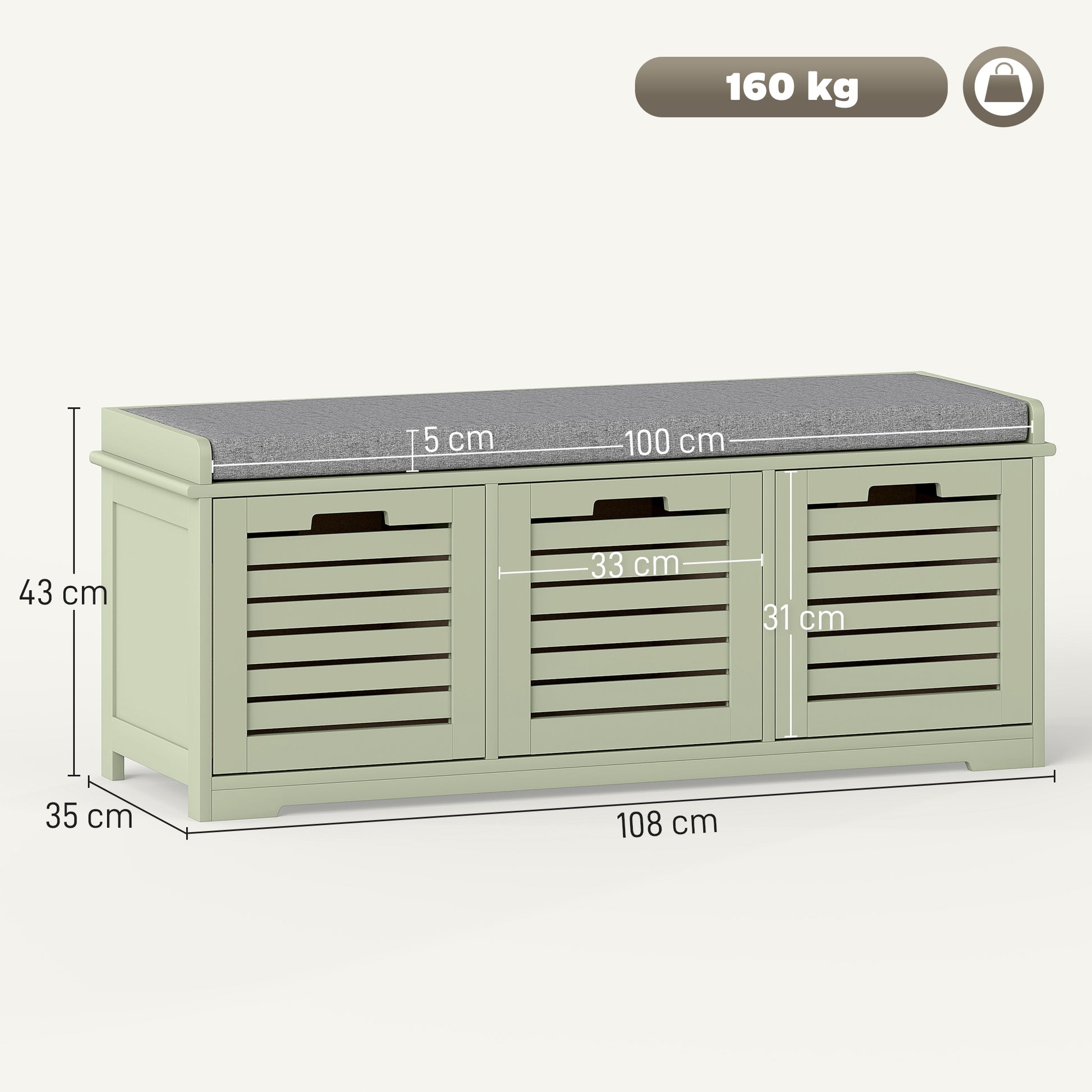 3-Door Shoe Storage Bench Cushion Seat Slatted Doors, Green