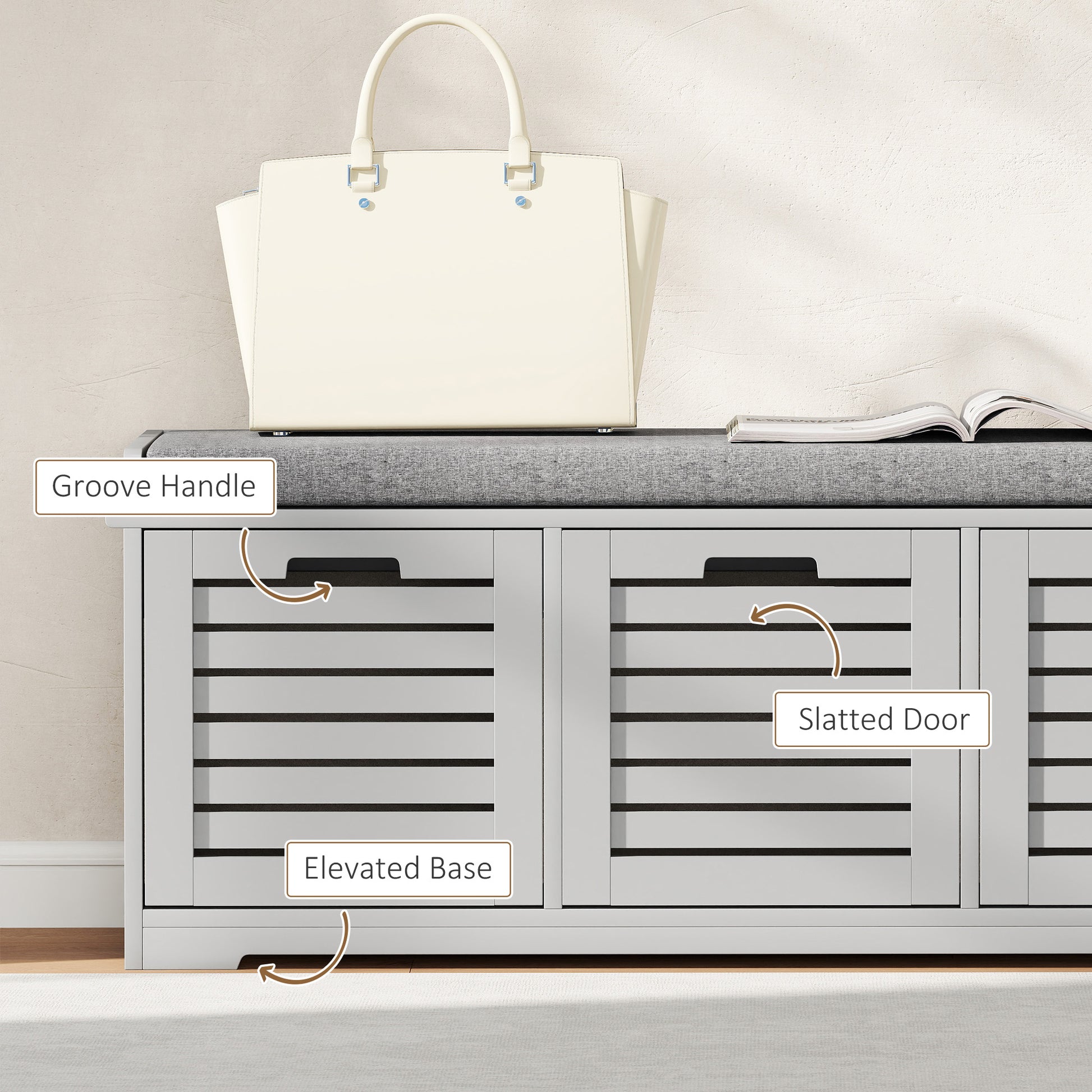 3-Door Shoe Storage Bench Cushion Seat Slatted Doors, Grey