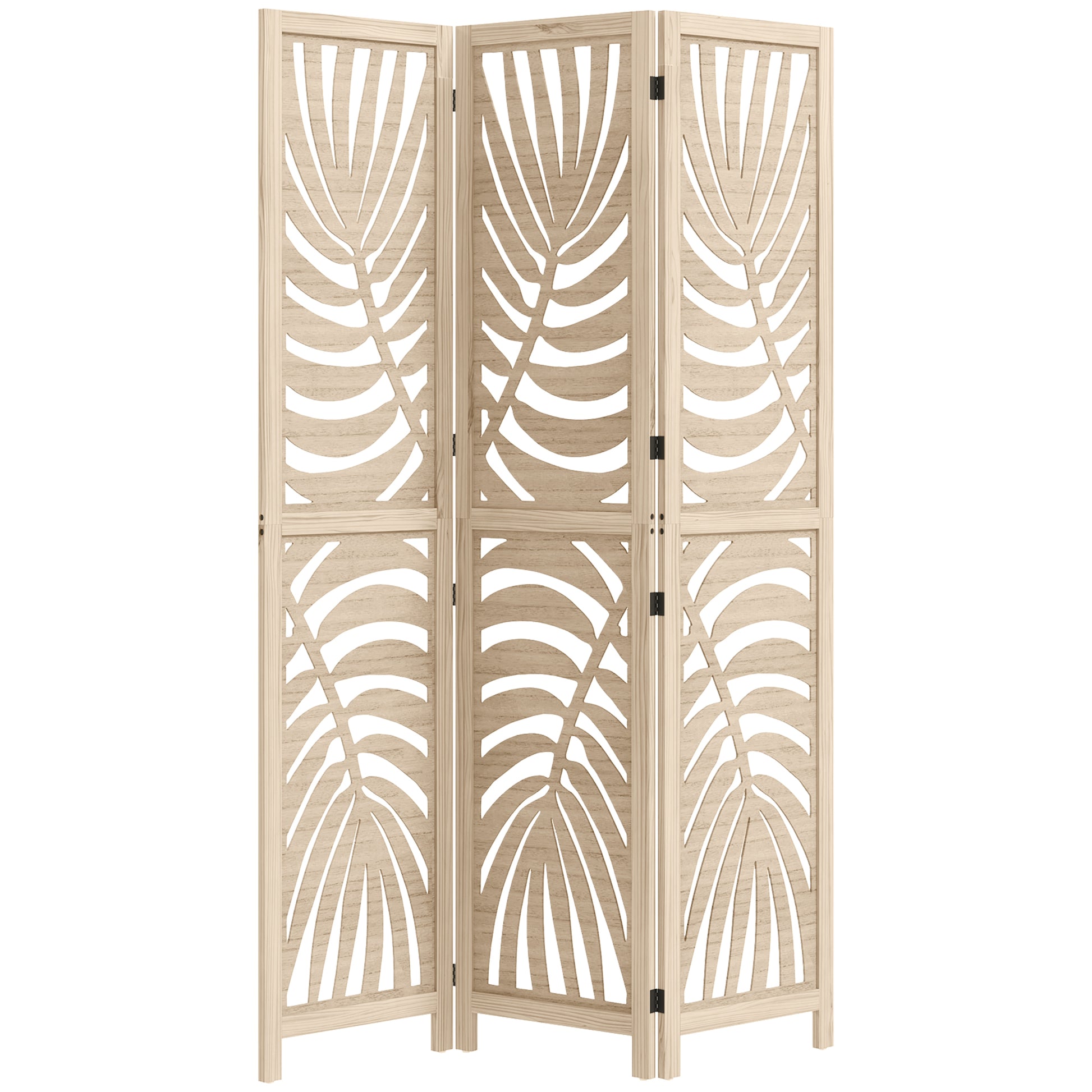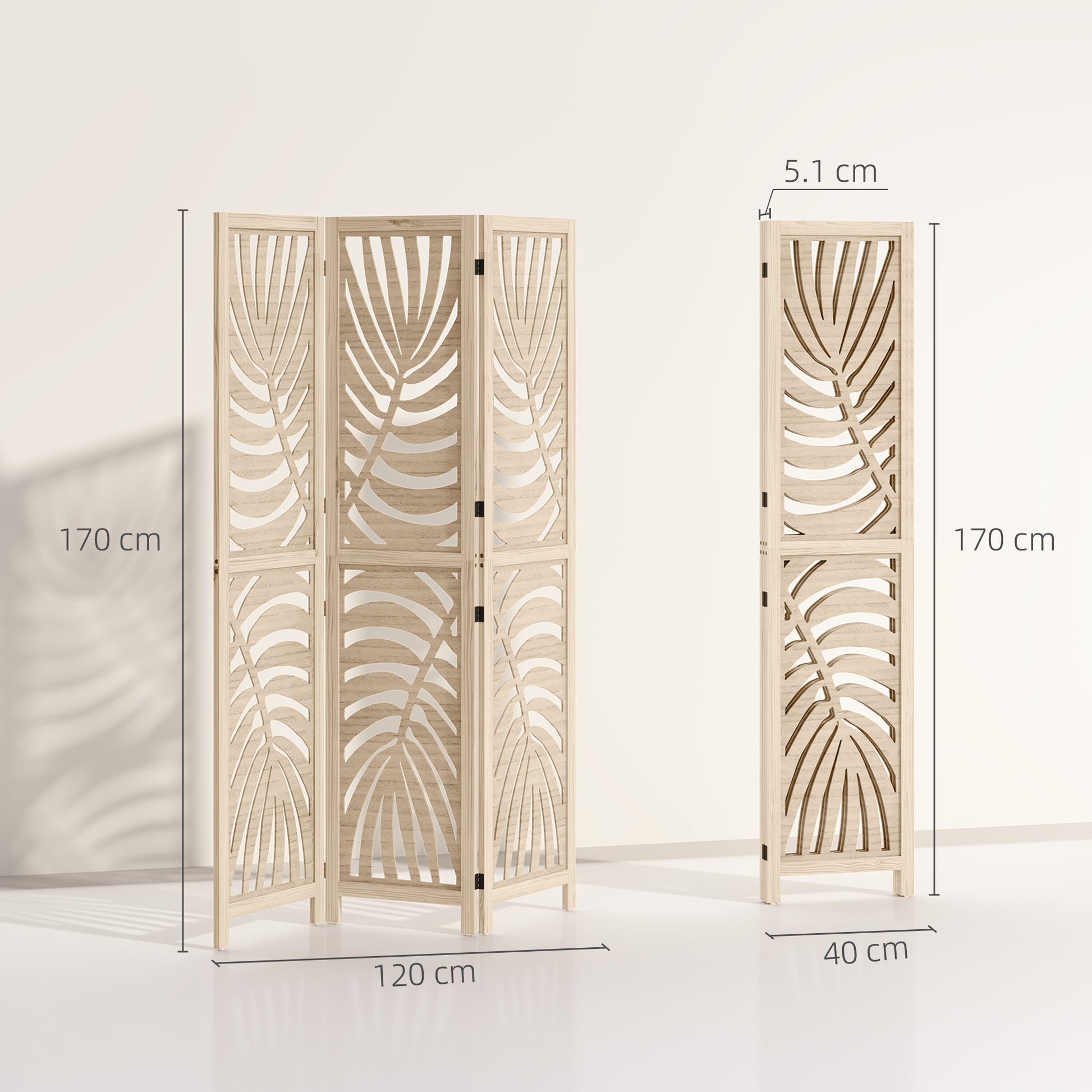 Transform your space with the folding room divider! This three-panel privacy screen not only splits large areas but can also be detached into two separate partitions. Adorned with elegant tropic palm leaf patterns, it adds a touch of sophistication while providing solid support with its solid paulownia wood frame. Easy to fold and move, it's the great solution for any room.Specifications