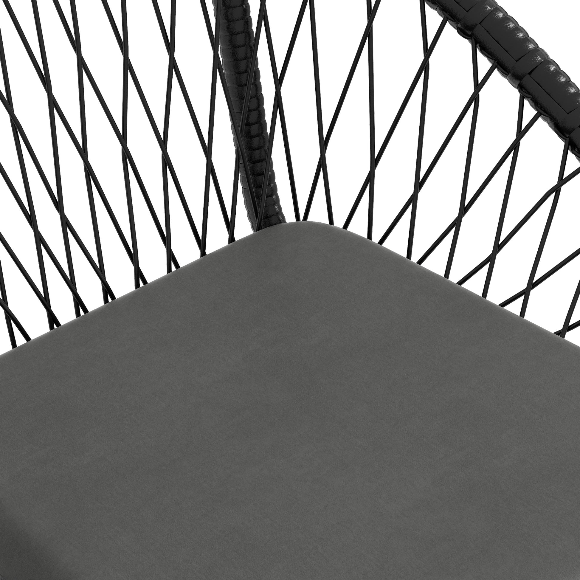 Go for style and comfort with this three-piece garden set. Includes two tub-shaped rattan chairs and a round coffee table. The metal tabletop is a strong and sleek holding place, also wipes clean with damp cloth easily. Chairs come with cushions for comfort. An all-season all-rounder.