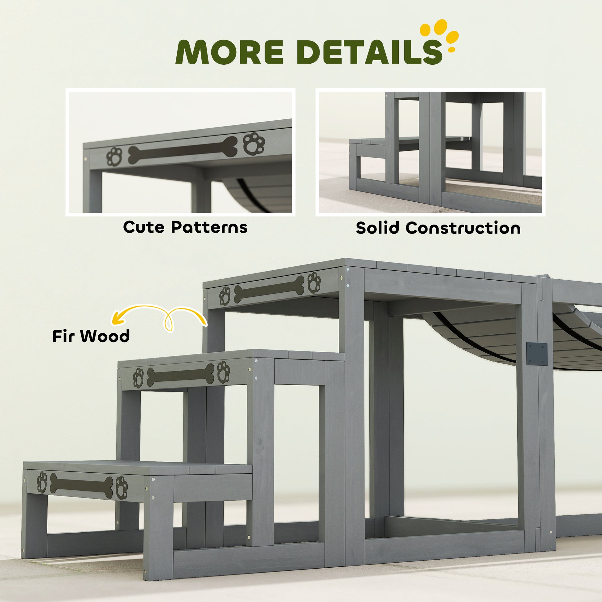 Keep dogs active and engaged with this three-piece agility set, featuring a balance bridge, pause platform and training stairs. Suitable for beginners and experienced pets, the adjustable design allows you to tailor each session to their skill level. Made from solid fir wood with a sleek grey finish, it supports medium and large dogs up to 40 kg. A great way to build confidence, coordination and fitness in a fun, structured way.Specifications