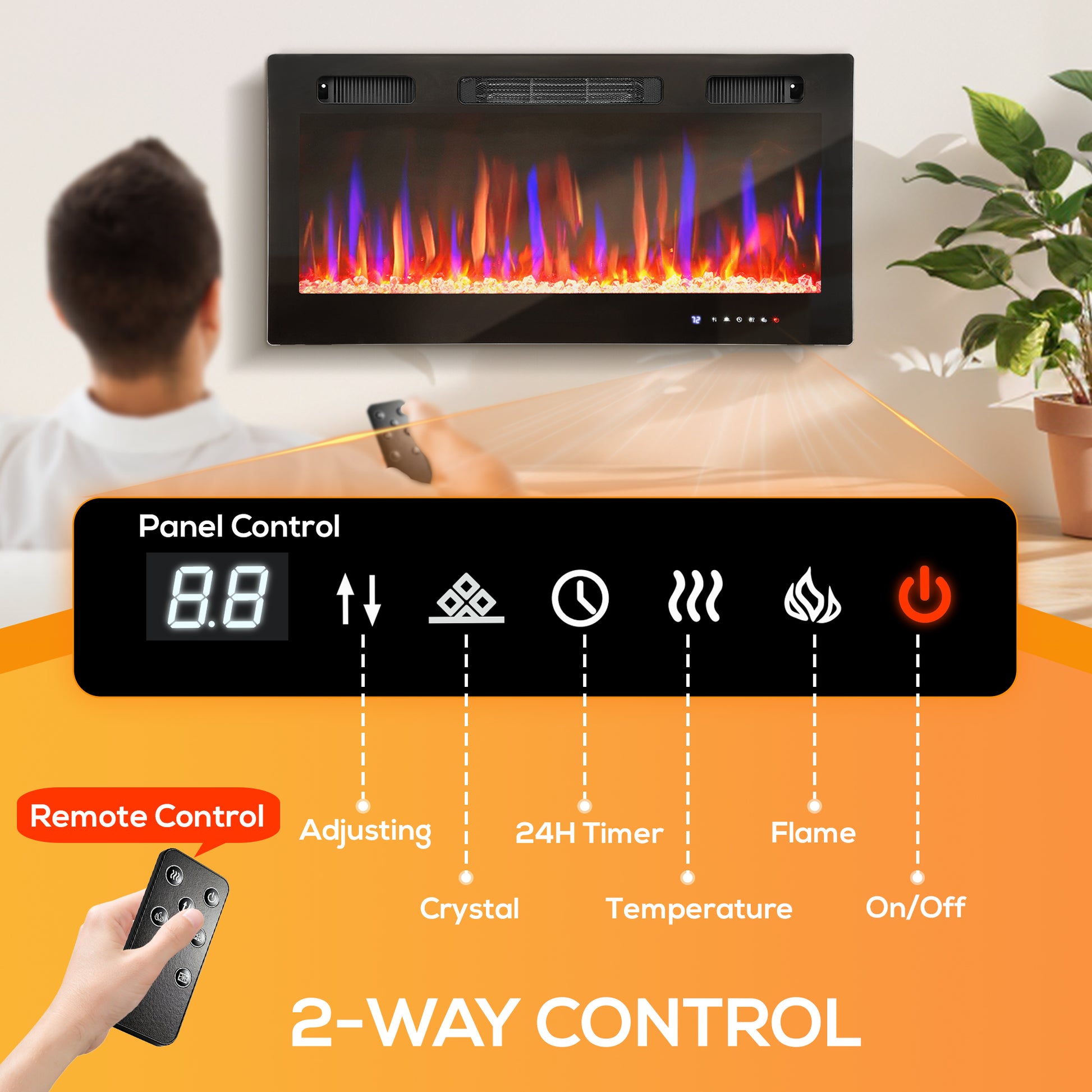 36" Wall Electric Fireplace, Slim Electric Fire, 1800W, Black