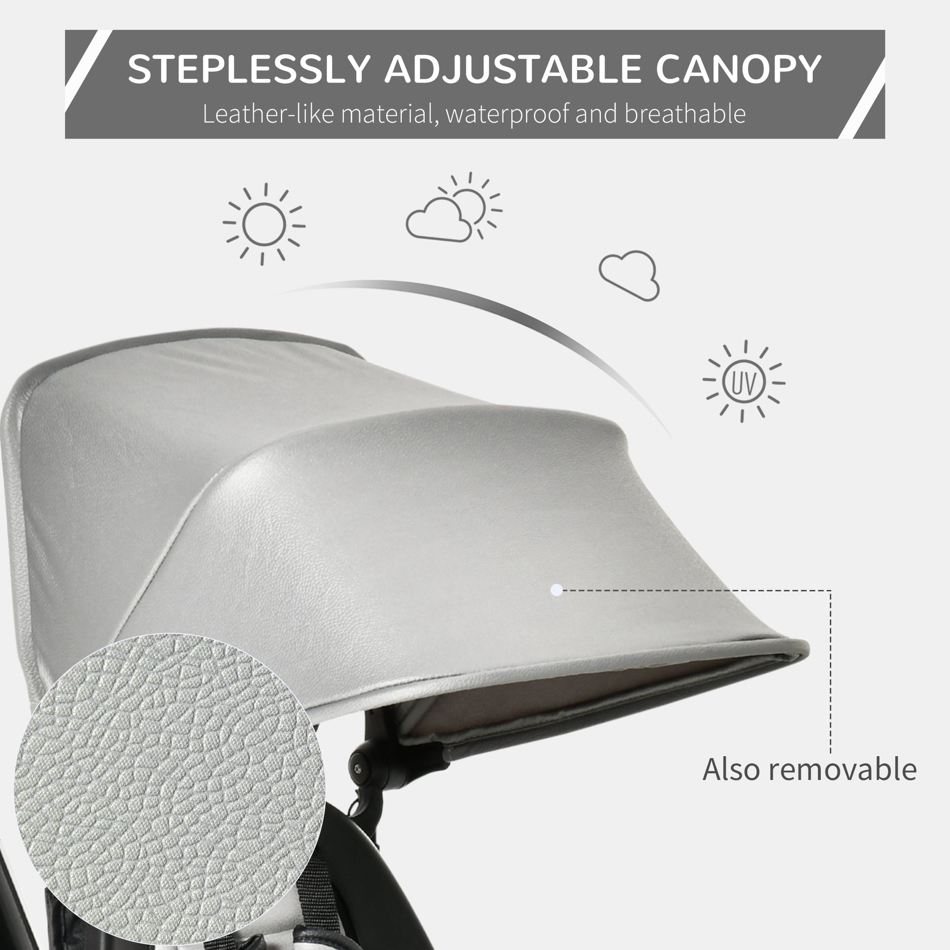 - Fully adjustable: To accommodate parents of various heights, the parent push handle that is three-gear adjustable and detachable when not in use. A covered area is provided by the adjustable, detachable canopy, and the folding footrest adds further comfort. To provide your children with the most comfortable seating experience, the backrest's angle is also adjustable.