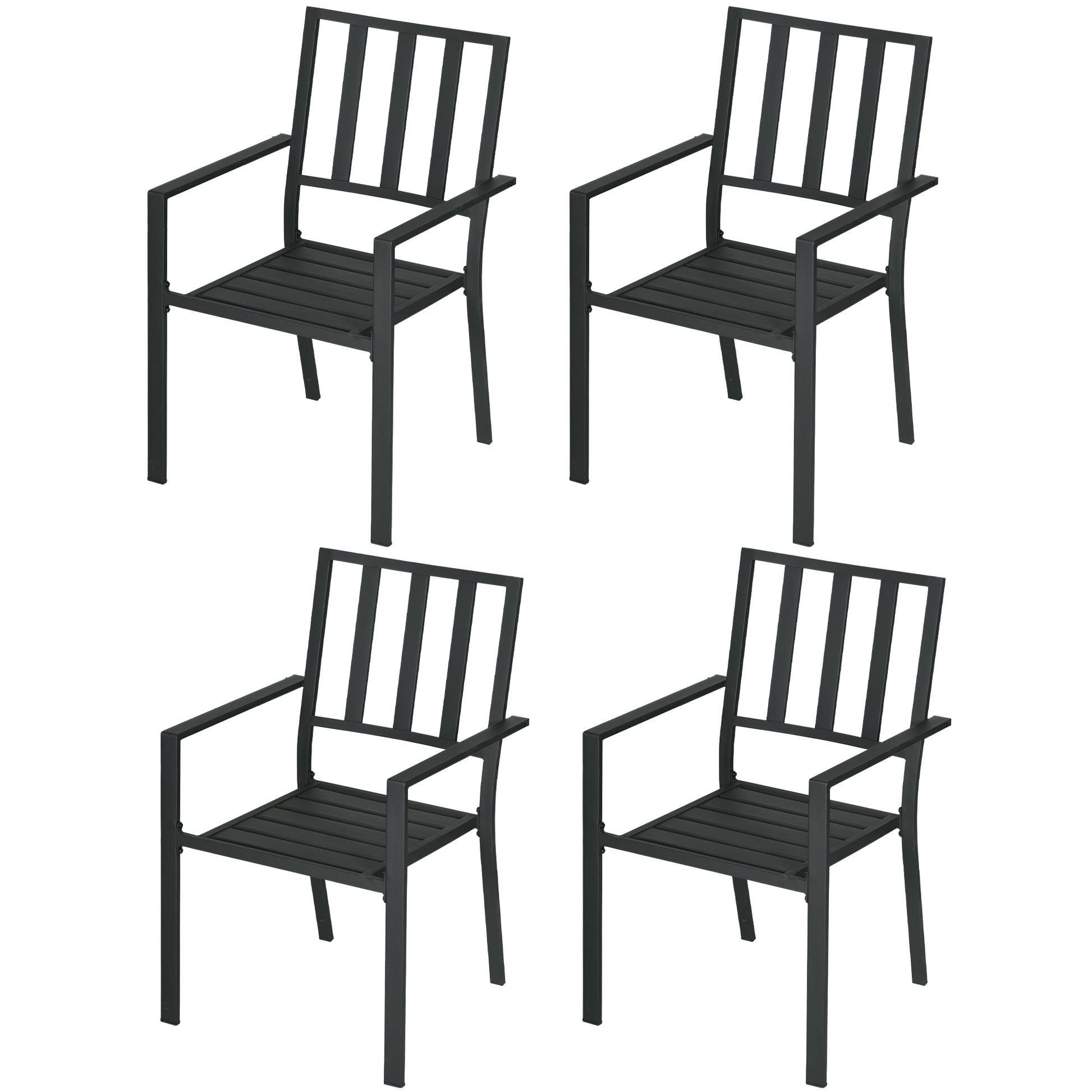 4 PCs Patio Dining Chairs with Metal Slatted Design, Black