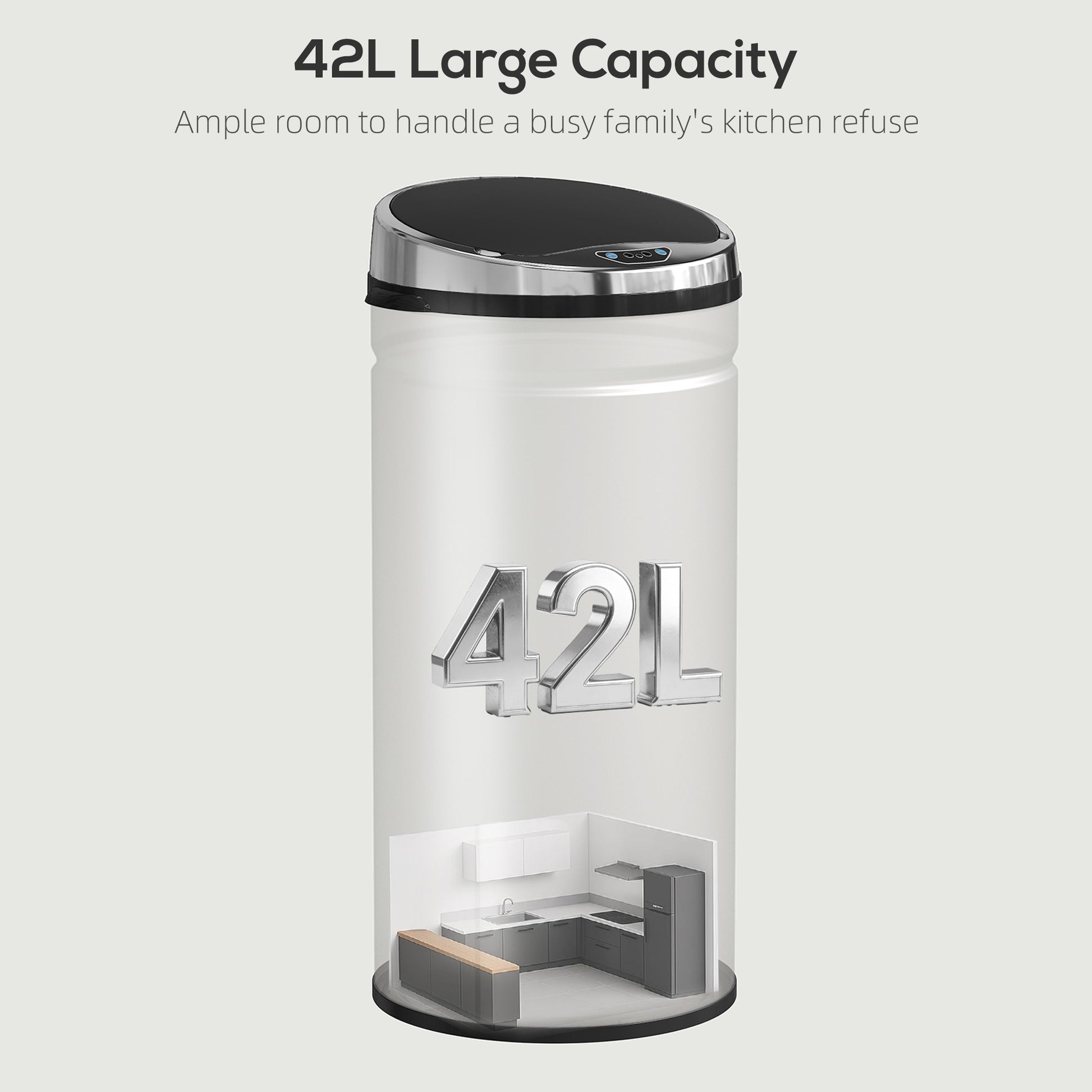 - 42L large capacity holds more waste for fewer changes