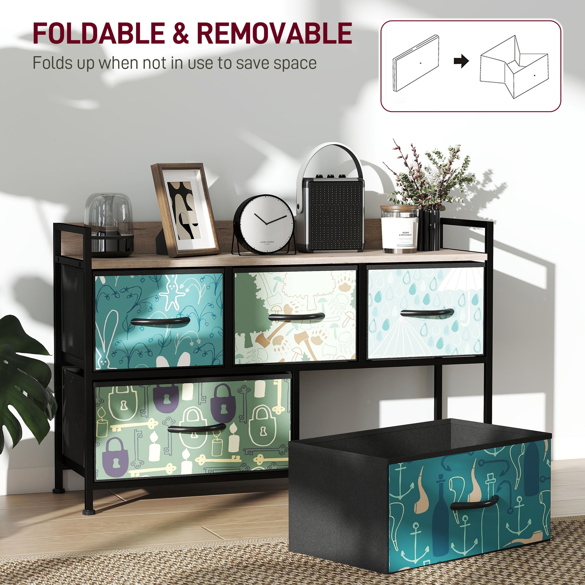 Transform your space with the chest of drawers, where style meets functionality! Adorned with exquisite patterns on each drawer panel, this bedroom drawers add a touch of elegance to any room. With five fabric drawers that are both removable and foldable, organising has never been easier. Great for bedrooms, living rooms, or home offices to keep your essentials tidy.Specifications
