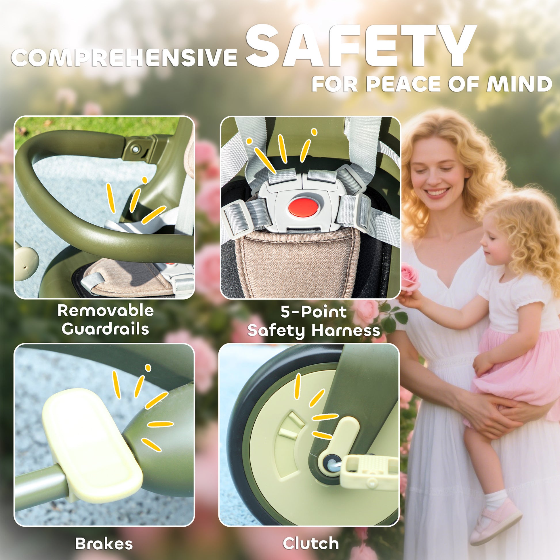 5 in 1 Foldable Kids Trike, Toddler Tricycle for 1-3 Years, Dark Green