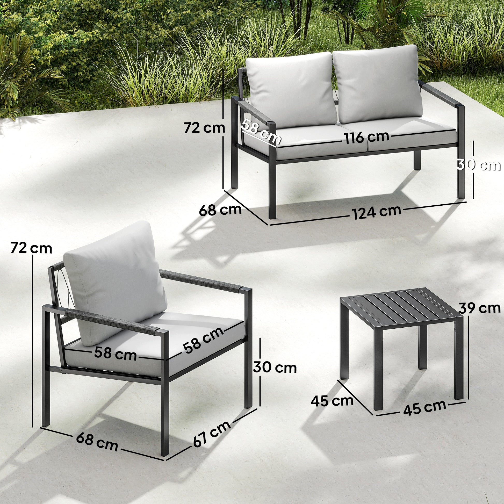 - Maximum Load: 240 kg (loveseat), 120 kg (per chair), 30 kg (per table)