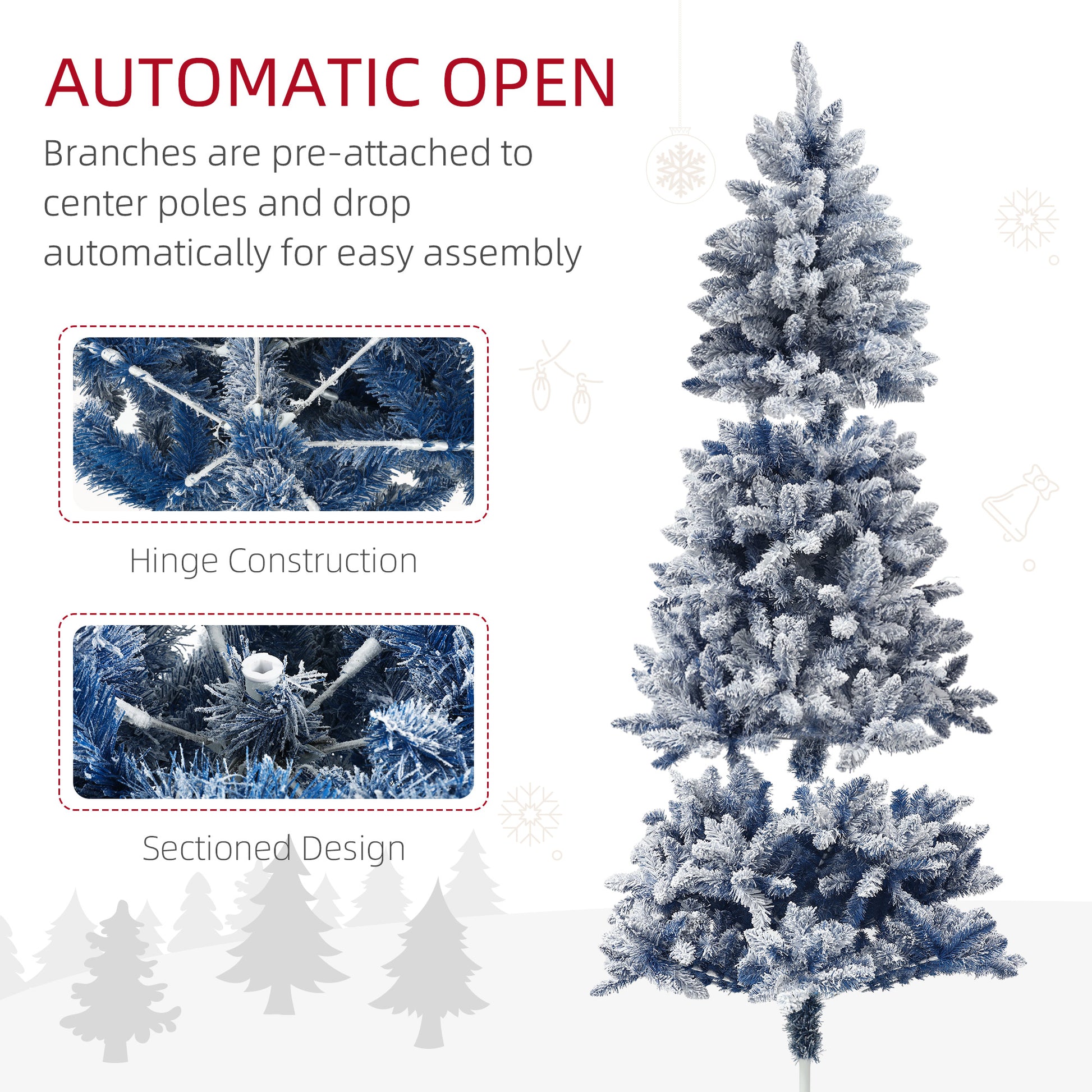 6 Foot Artificial Blue Snow Flocked Christmas Tree with Hinged Branches