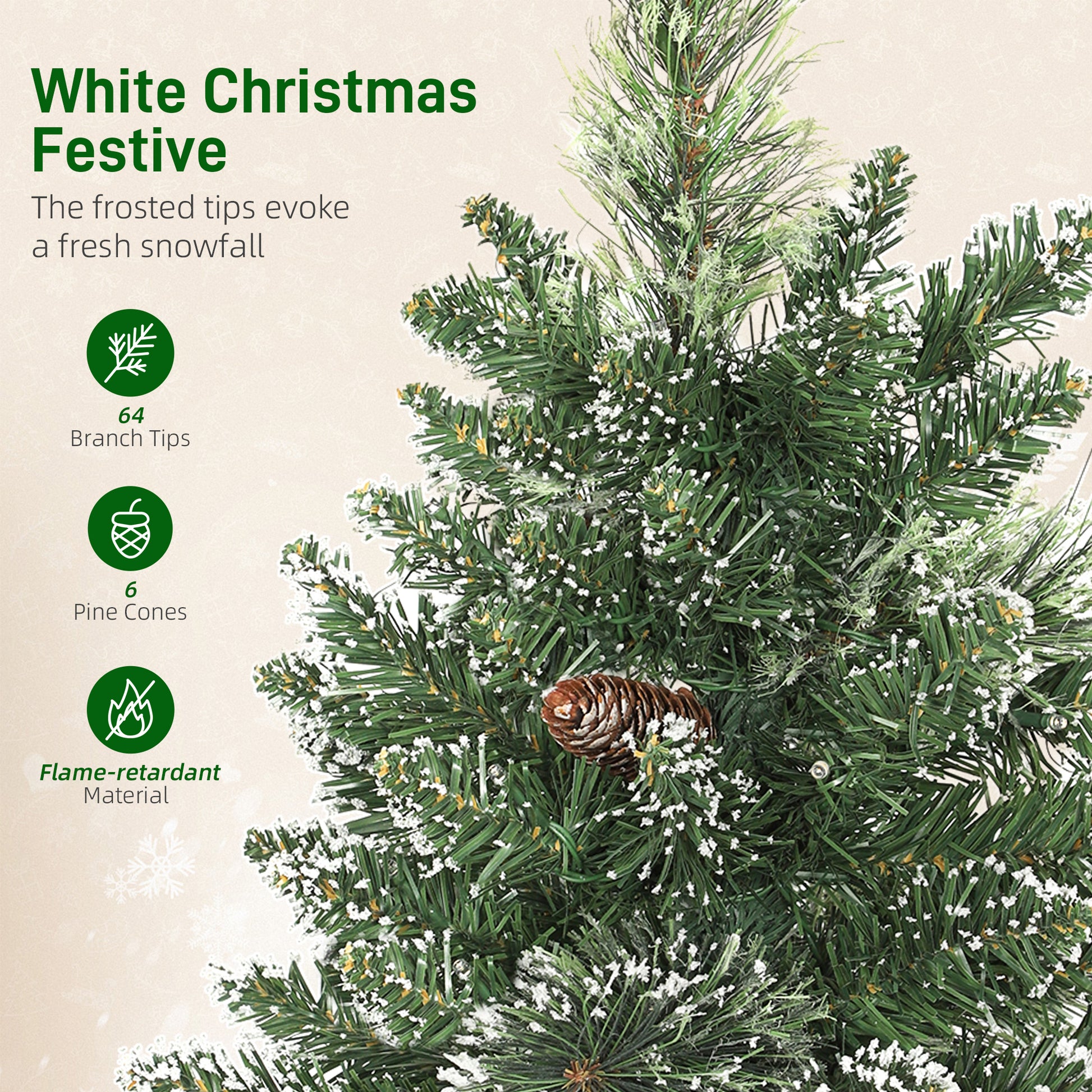 Light up your festive spirits with the Small Christmas Tree! Pre-lit with 35 warm white LEDs and a convenient timer, it offers a cosy glow with zero fuss. Adorned with snow-flocked branches and pine cones, it captures a winter wonderland vibe. Safety is paramount with flame-retardant branches, ready to brighten your space securely. Great for adding a touch of Christmas charm to any small indoor area!Specifications