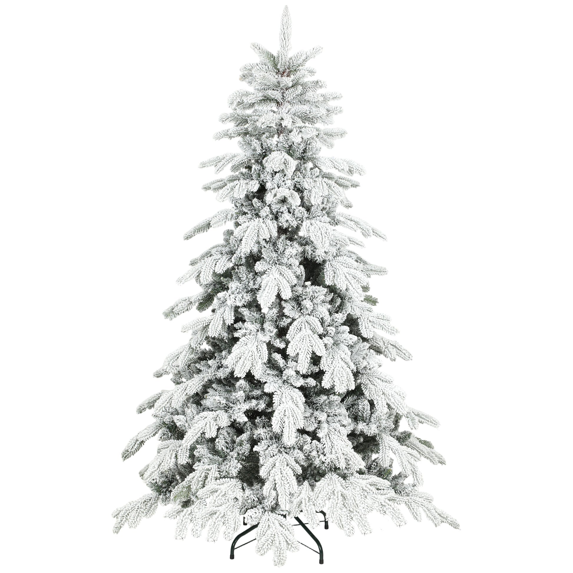 This Christmas, create a serene winter wonderland - in your own home, with this artificial Christmas tree. Sporting lush green branches in faux snow flocking, this is a wide and voluptuous piece: suitable for the season. The pre-attached hinges mean all you have to do is shape the tree quickly - frees up your time for family. The fire-resistant design offers peace of mind in the home (just don't expose close contact to naked flames!). Complete with a folding metal base.Specifications