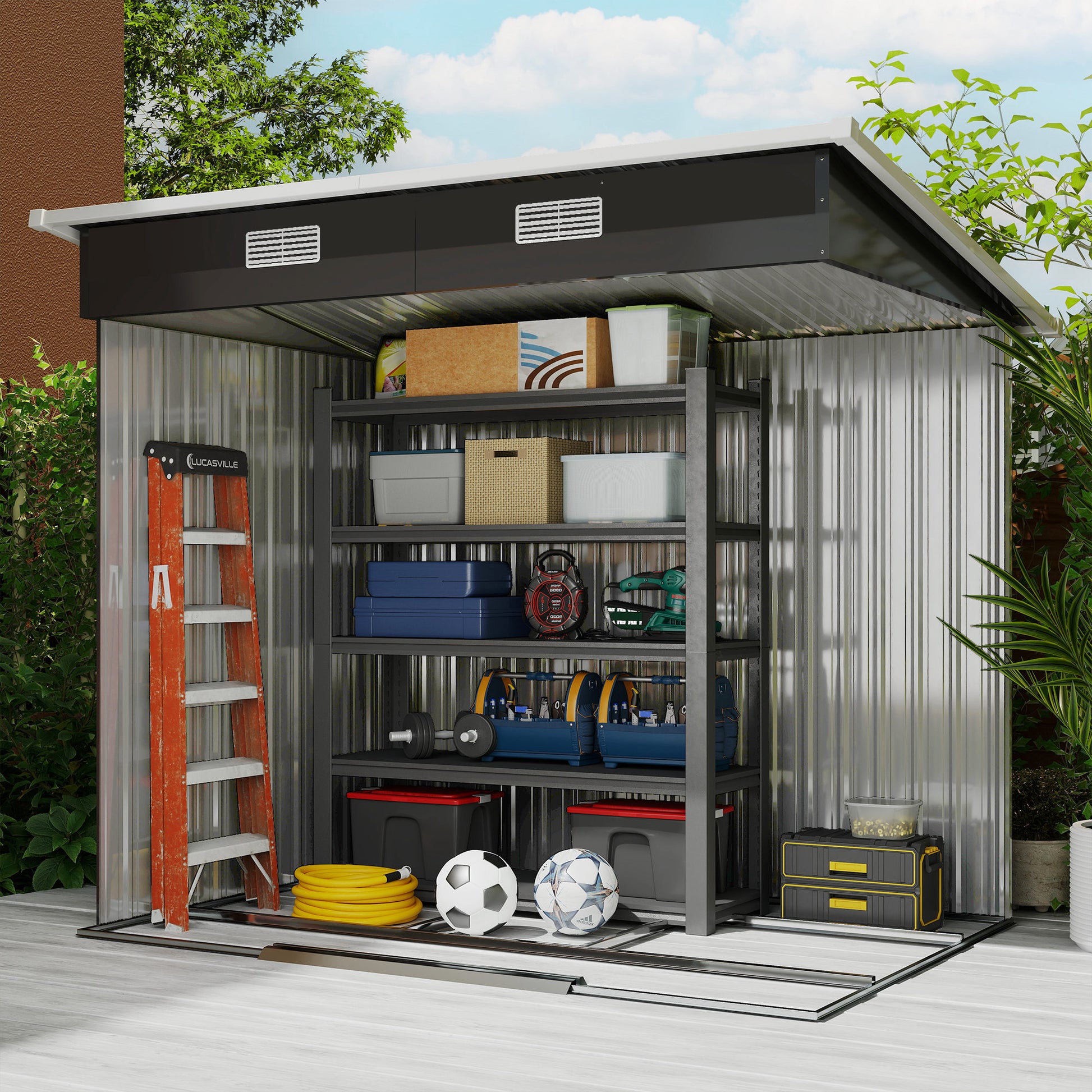 7 x 4ft Outdoor Garden Storage Shed for Backyard Patio Black