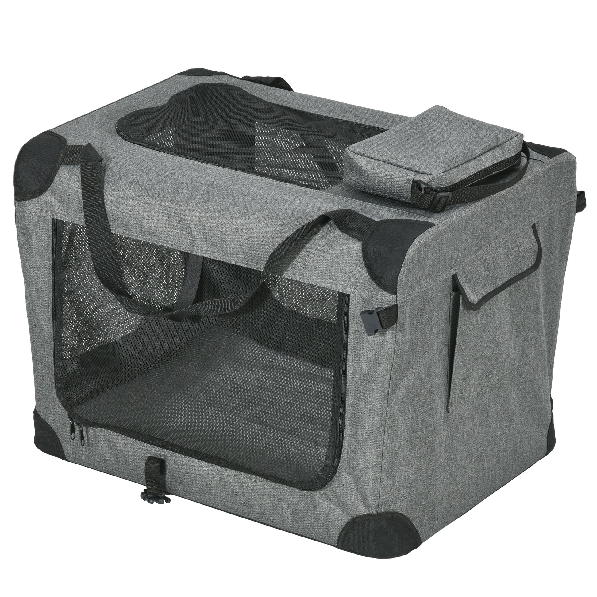 - Three doors: Top, side and front. Zip fastening means it's easy for your pet to enter and leave. This soft dog crate uses mesh material to keep the inside as cool as possible.