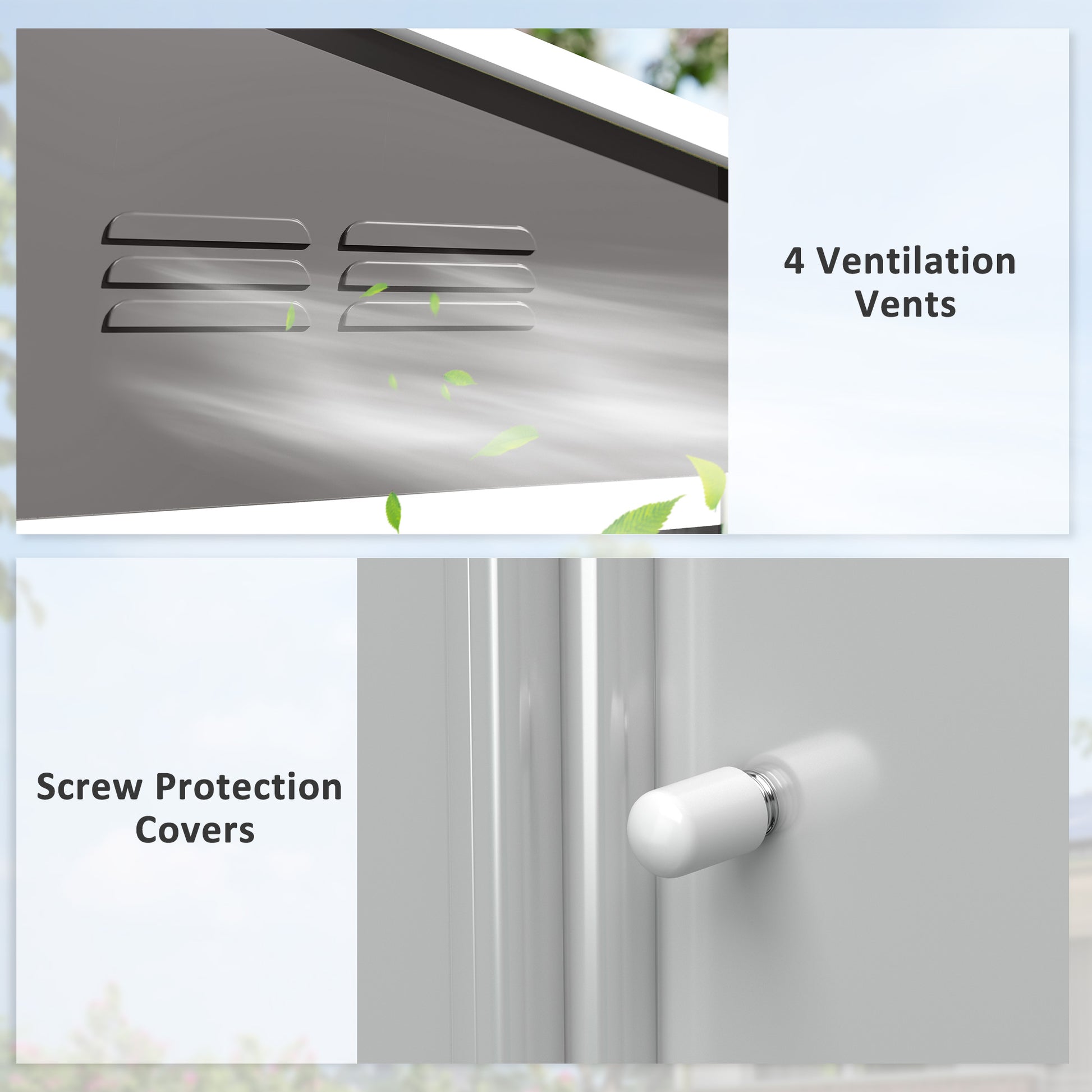 - Four ventilation slots allow air inside the large shed