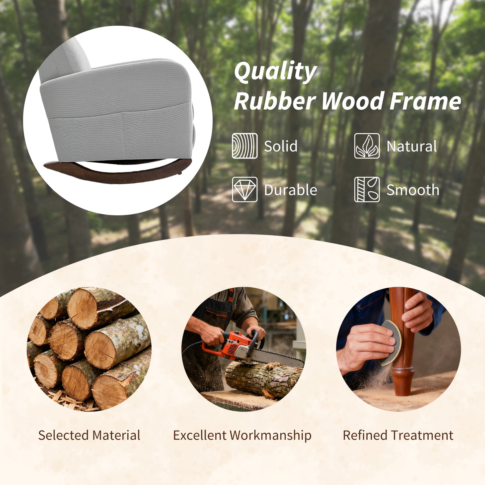 - Rubberwood legs with anti-tip foot pins and felt pads ensure stability while protecting floors