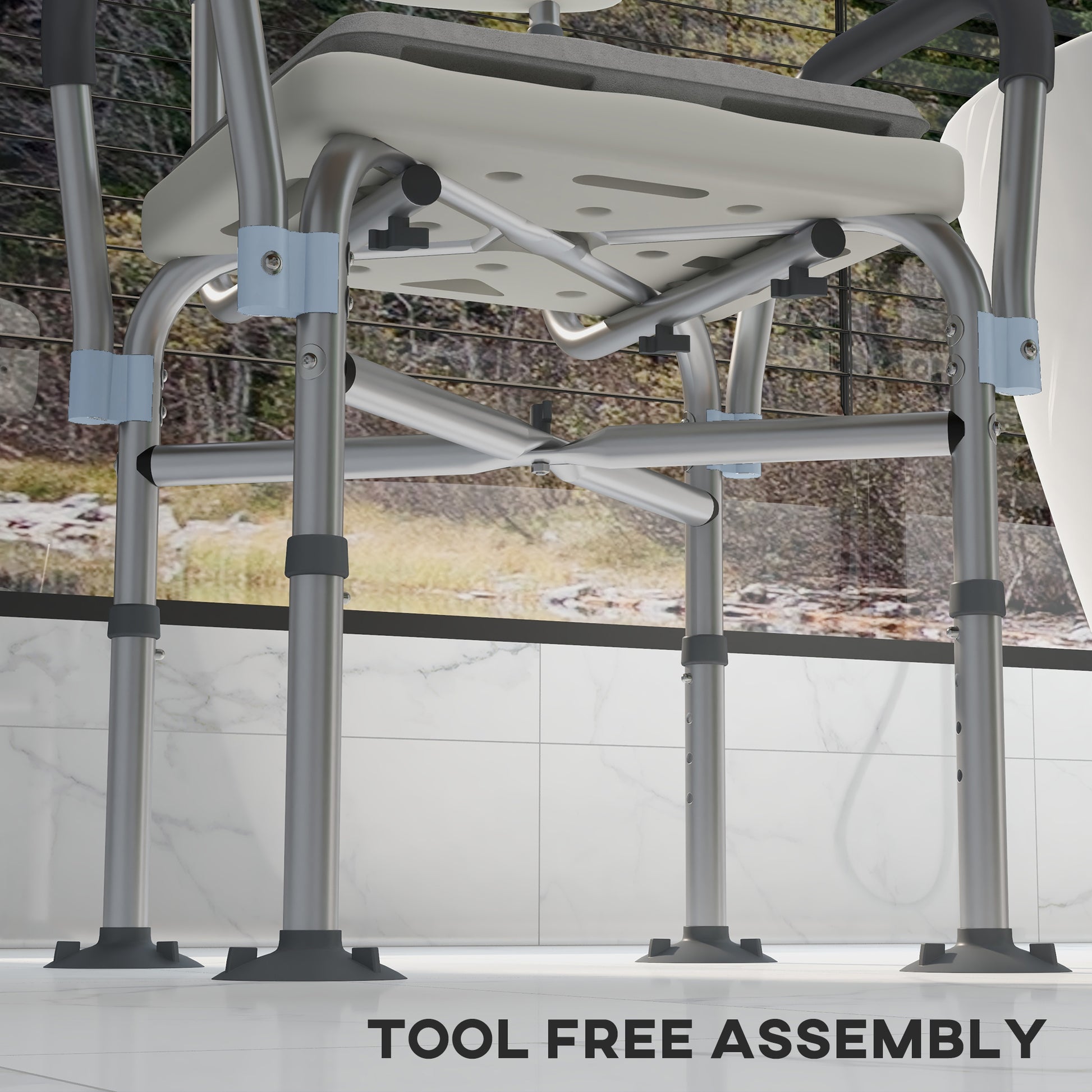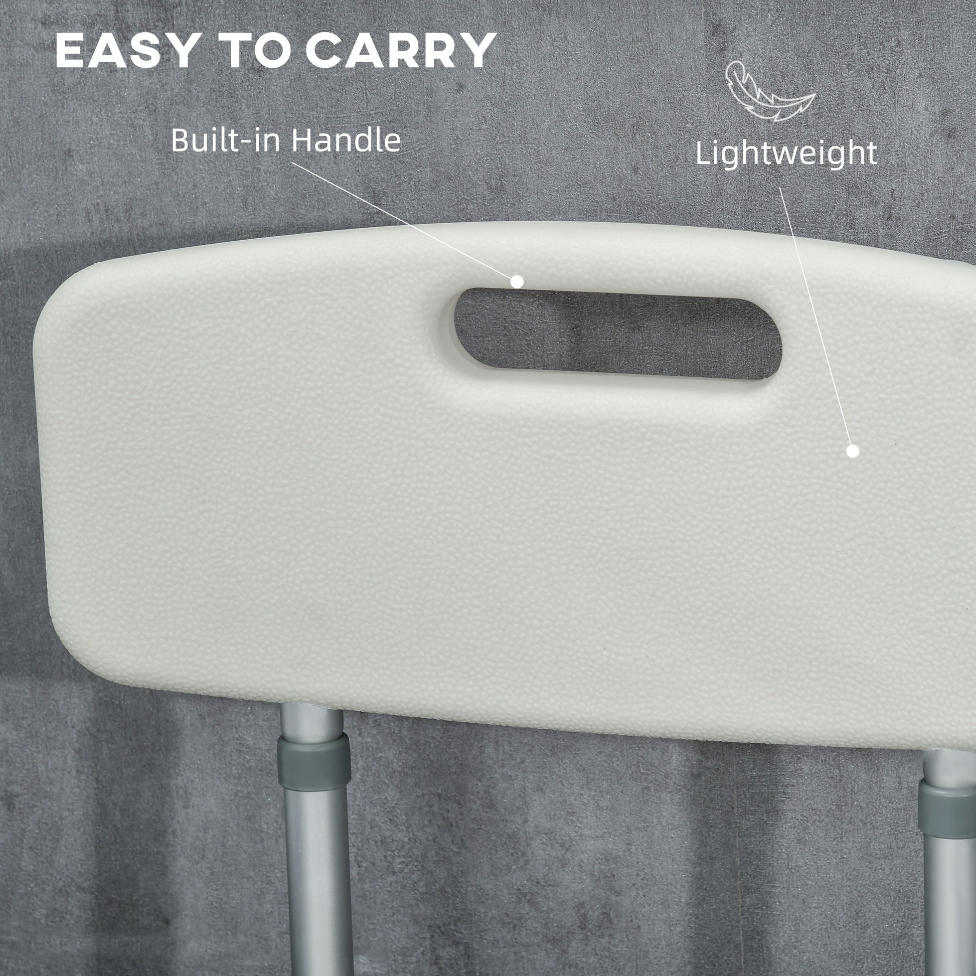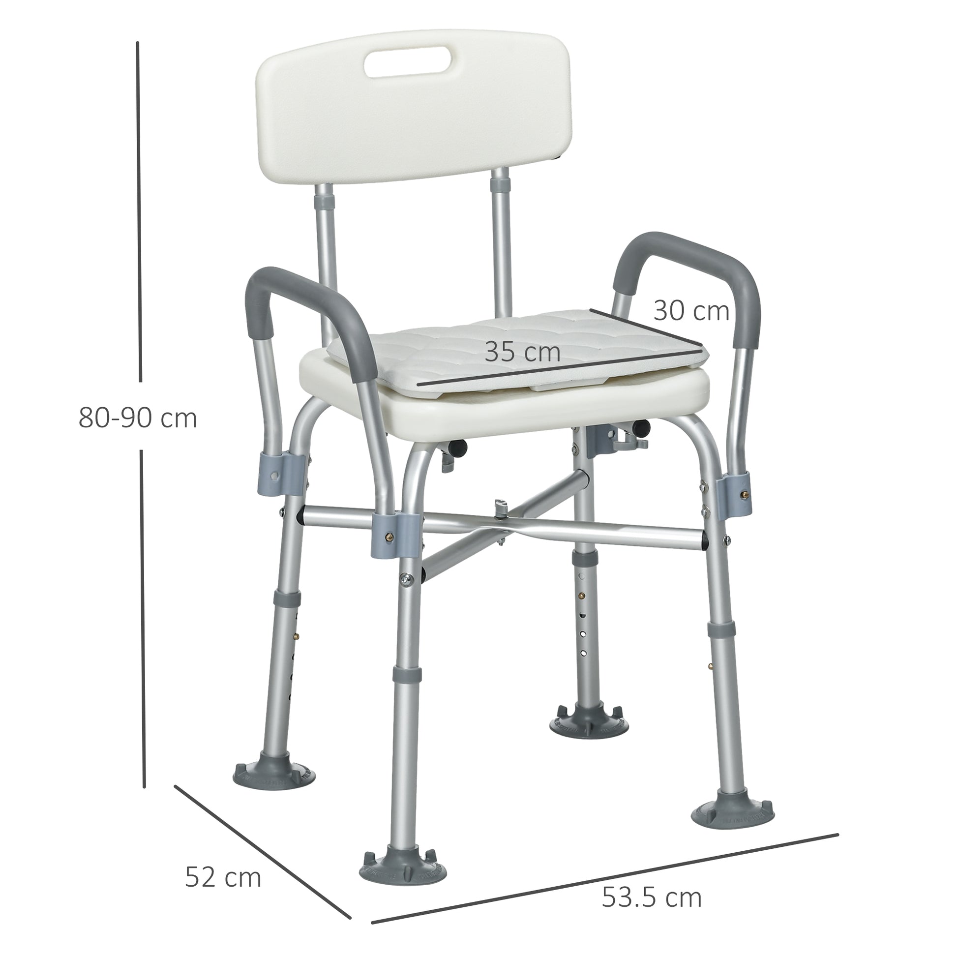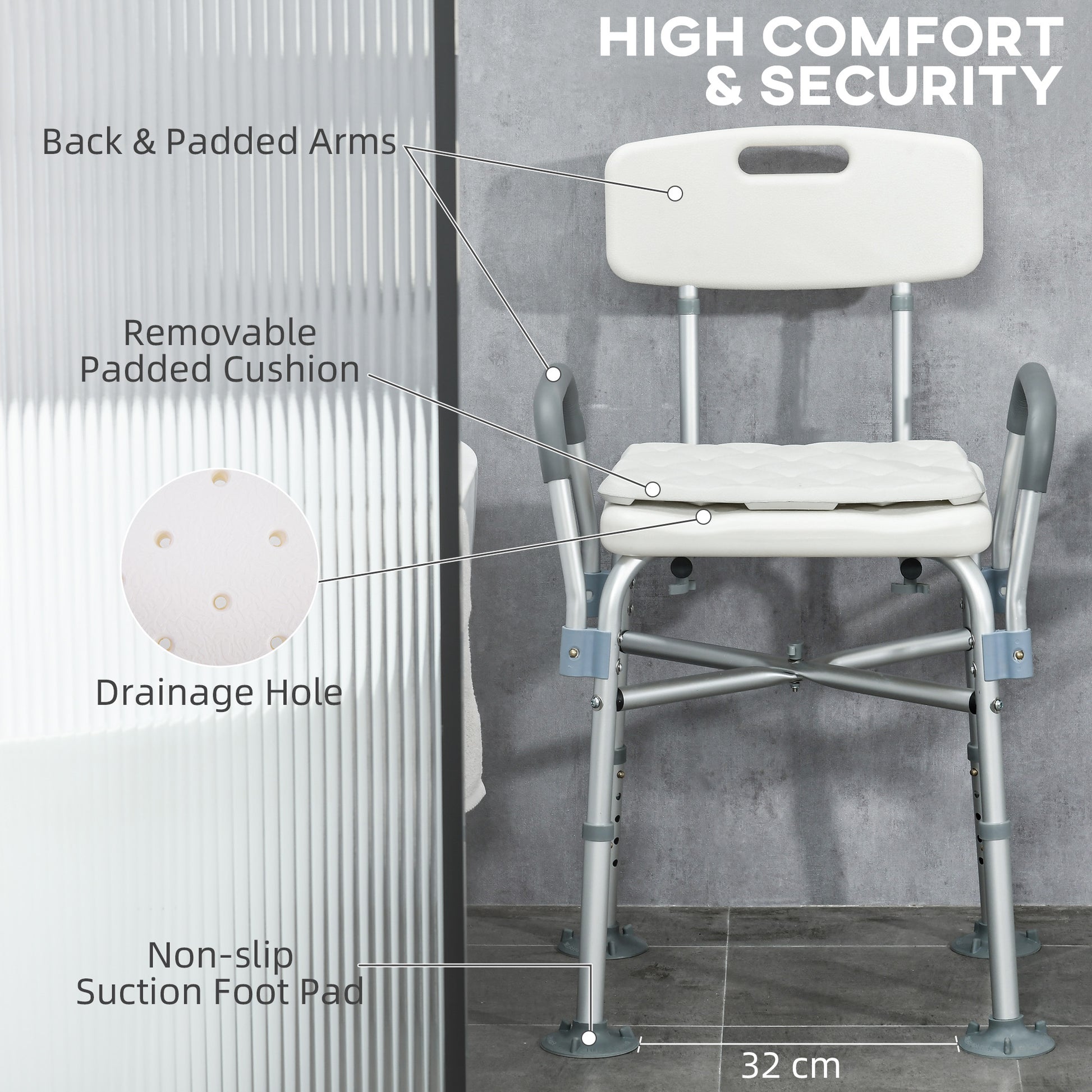 Aluminium Shower Chair with Backs and Arms, Height Adjustable Shower Seat w/ Removable Padded Cushion, Bath Stool, White