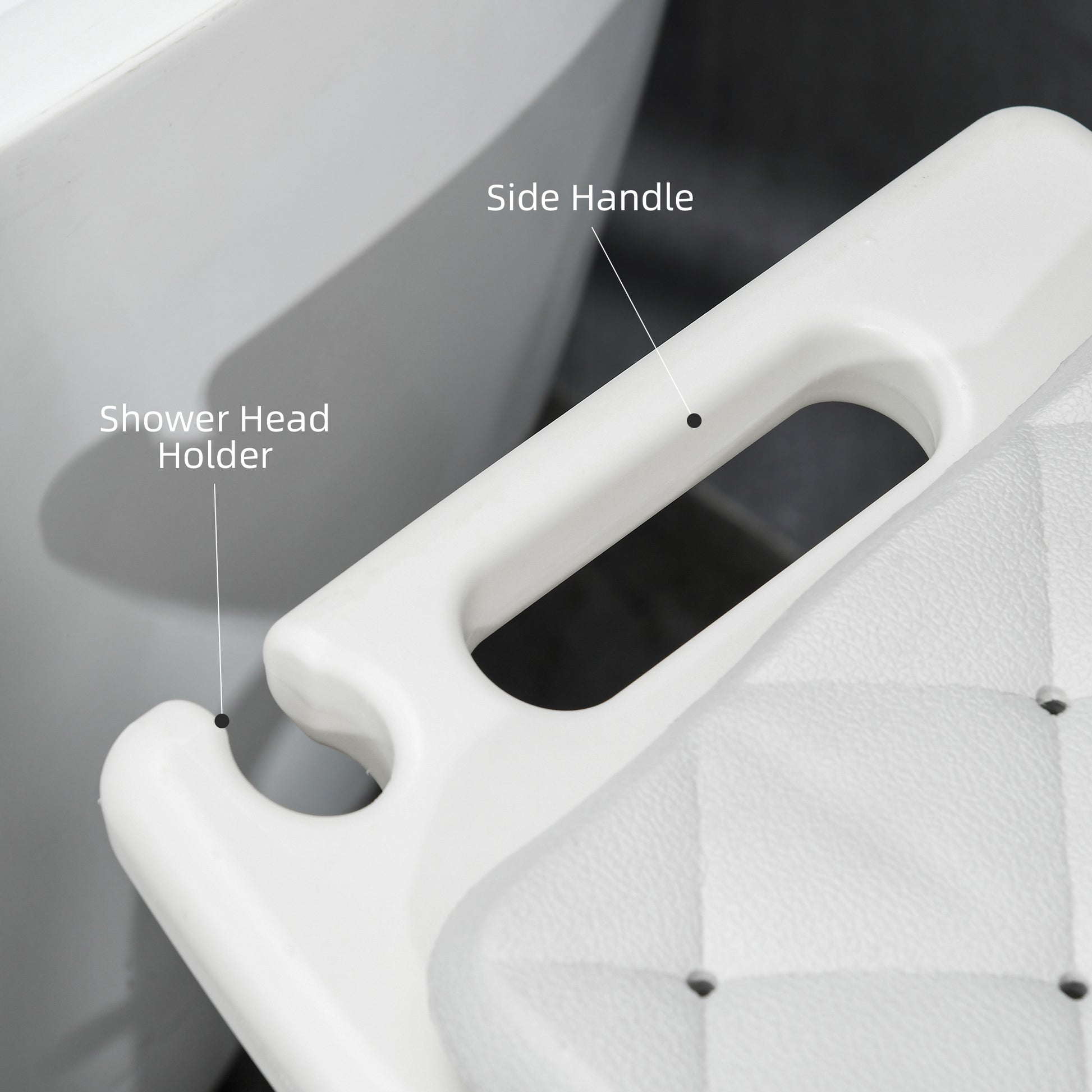 - Shower head holder: Useful shower head holders on 2 corners of the bathroom chair seat help you save worry and effort.