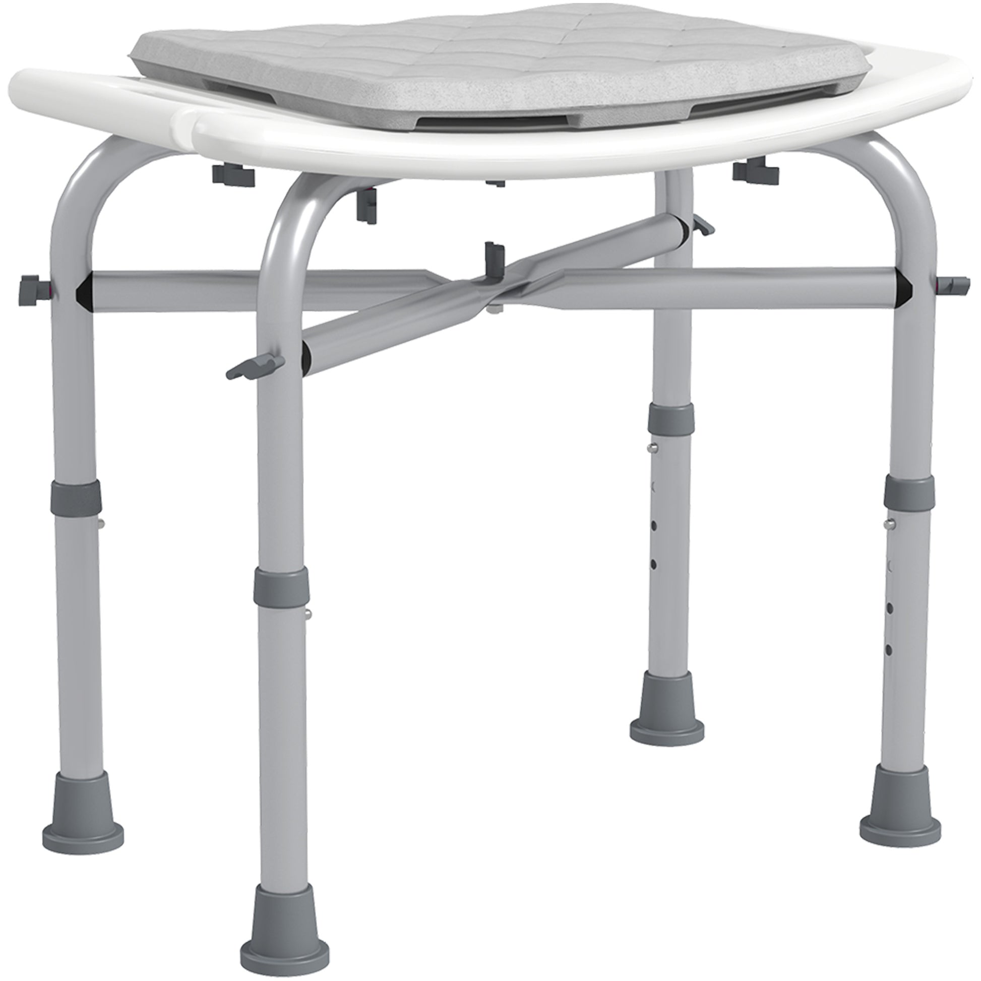 - Sturdy structure: Featuring aluminium and HDPE material with X frame under the seat, this bath seat for elderly can support 150kg. Four suction foot pads ensure stability on wet surfaces. Drainage holes prevent water build up to avoid slippery.