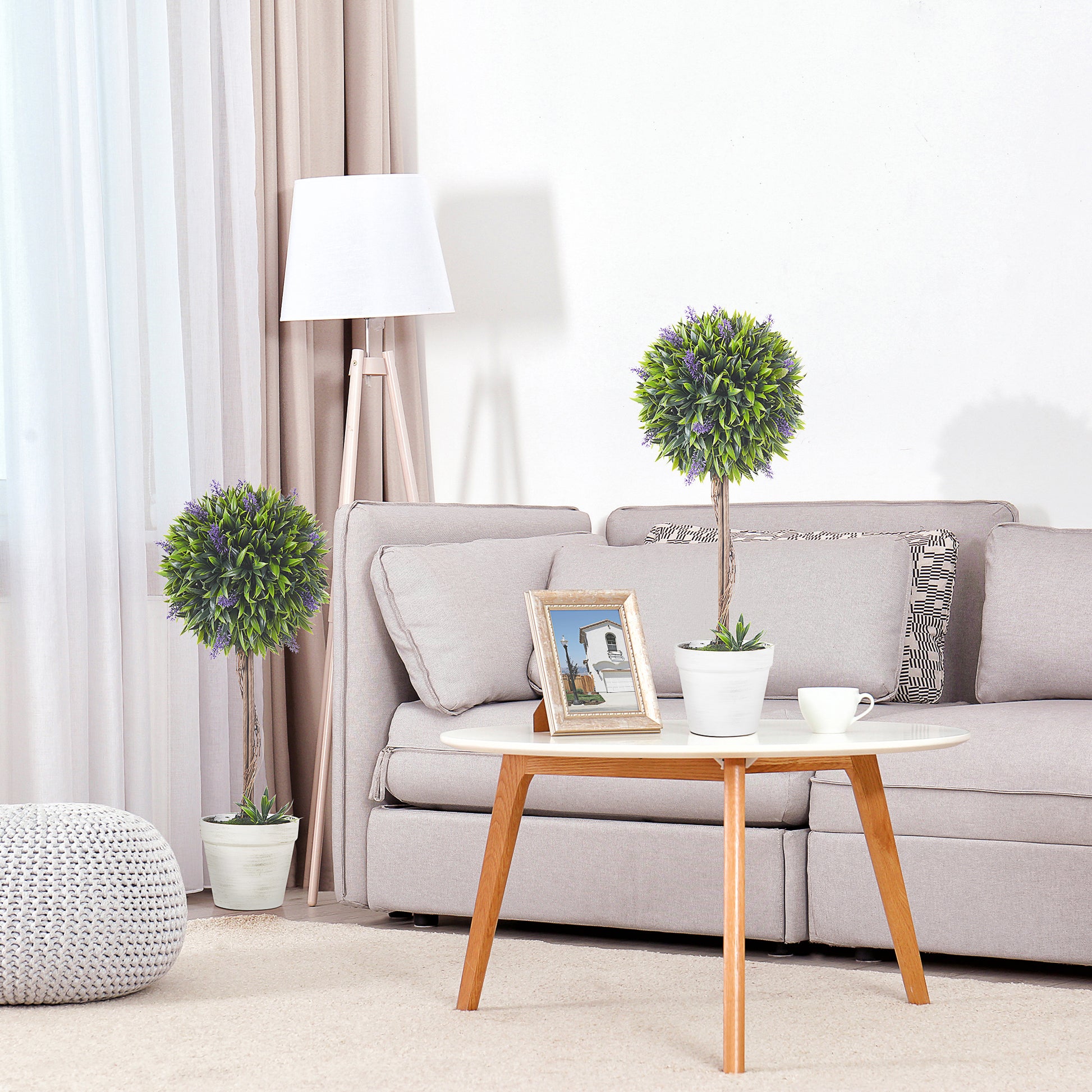 - The plants include big ball-trimmed bushes, 405 leaves, and 25 lavender flowers which bring a natural feeling to your room