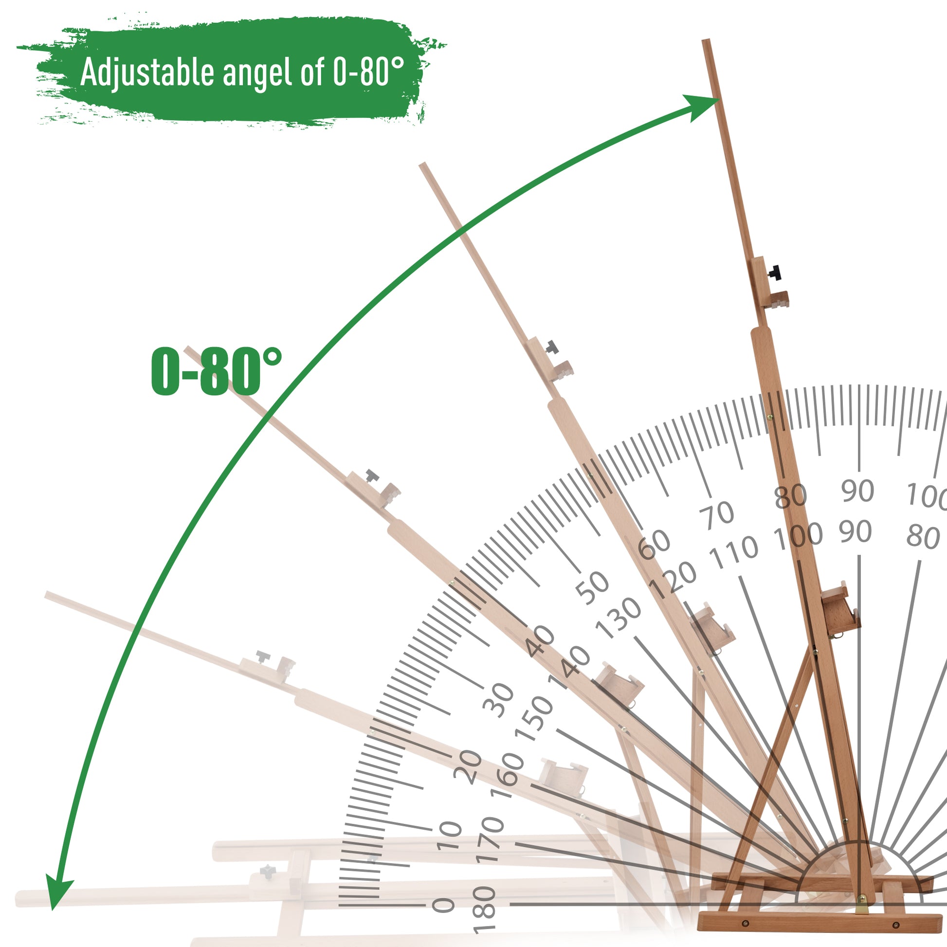 Vinsetto H-Frame Wooden Studio Easel Height Adjustable with Canvas Holder and Pencil Case for Display, Exhibition, Drawing, Painting