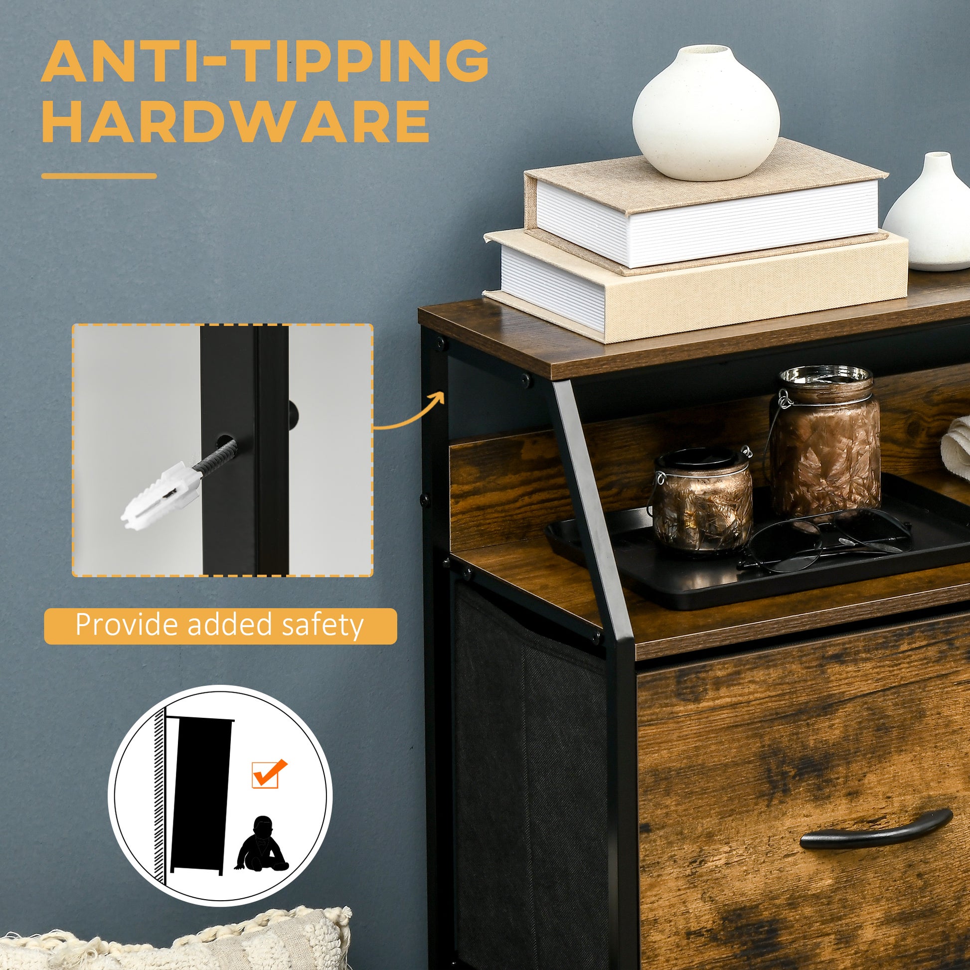 Bedroom Chest of Drawers, Industrial 5 Fabric Drawer Dresser with Open Shelf for Living Room, Rustic Brown