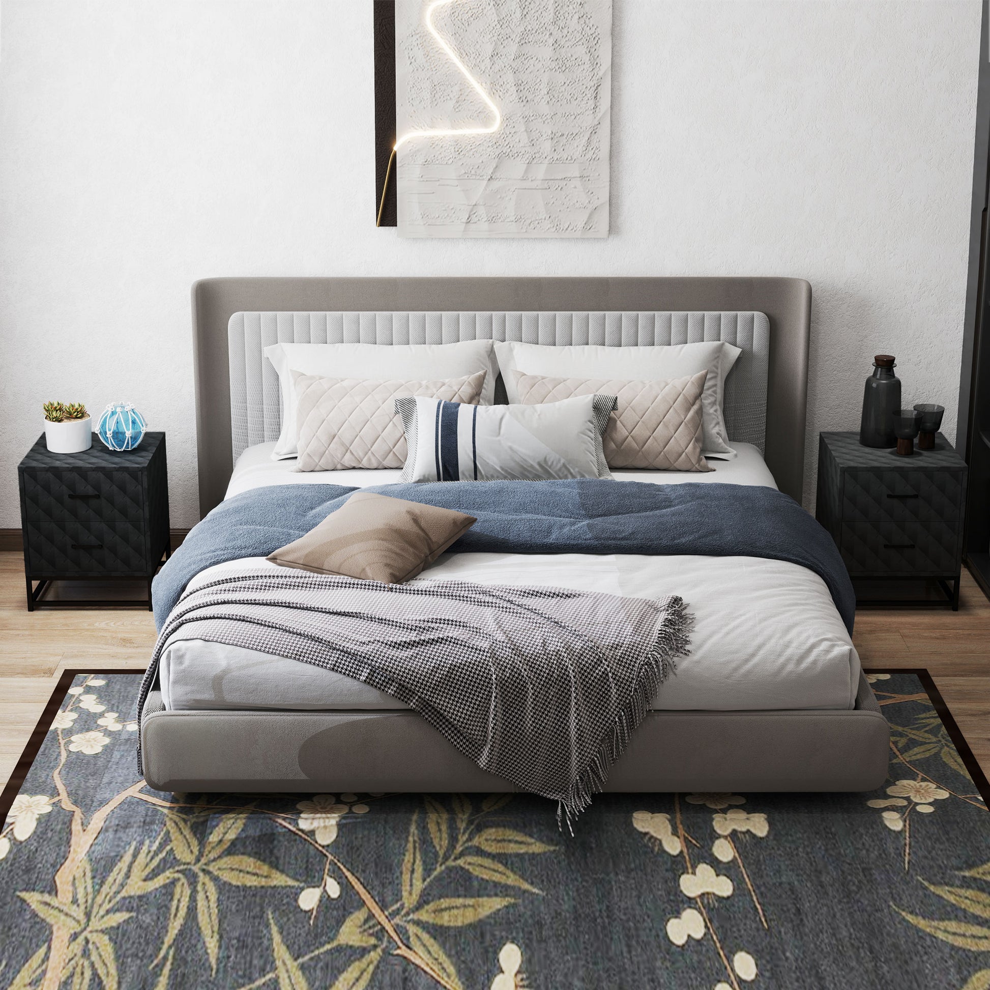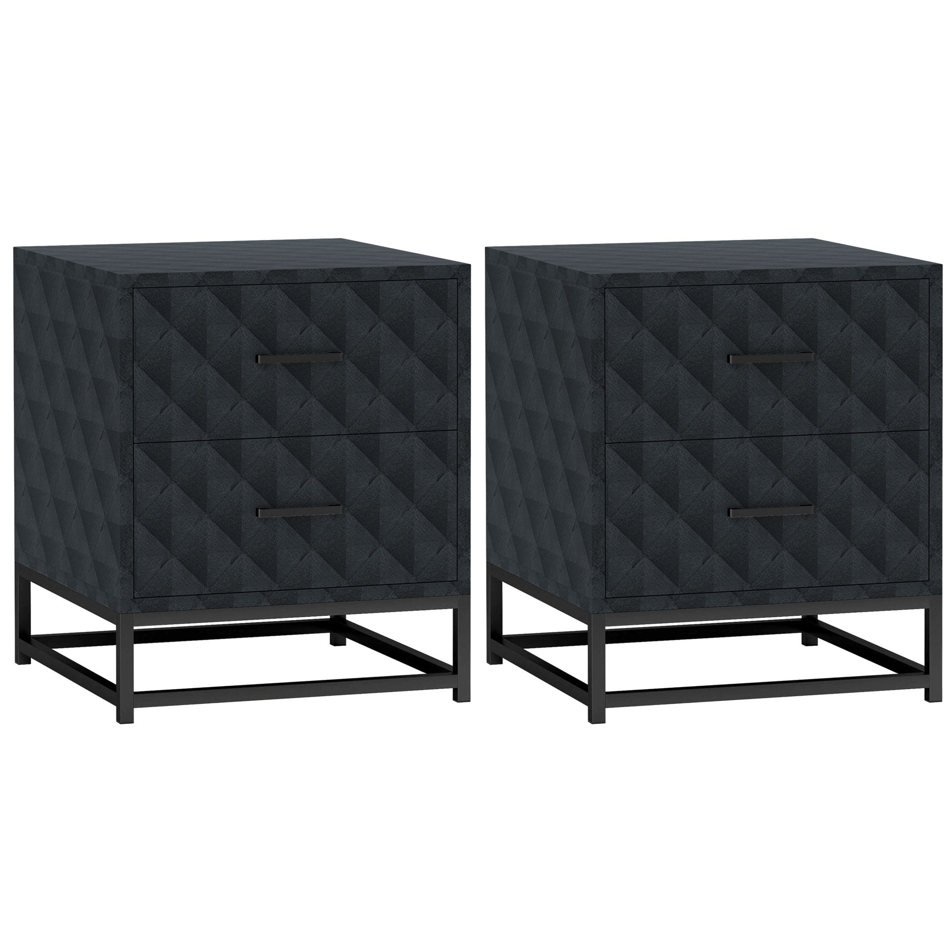 Add a splash of modern minimalism to your bedroom with the small bedside table set. Featuring a chic diamond-patterned veneer atop a sleek black steel frame, these bedroom drawers combine style with functionality. Each end table includes two drawers on smooth alloy rails, providing optimal storage while balancing your bedroom décor effortlessly. This pair fits any contemporary space and is suitable as a small side table or bedside table.Specifications