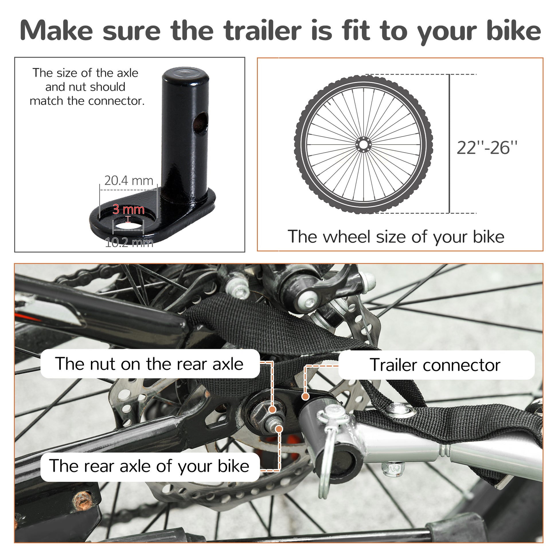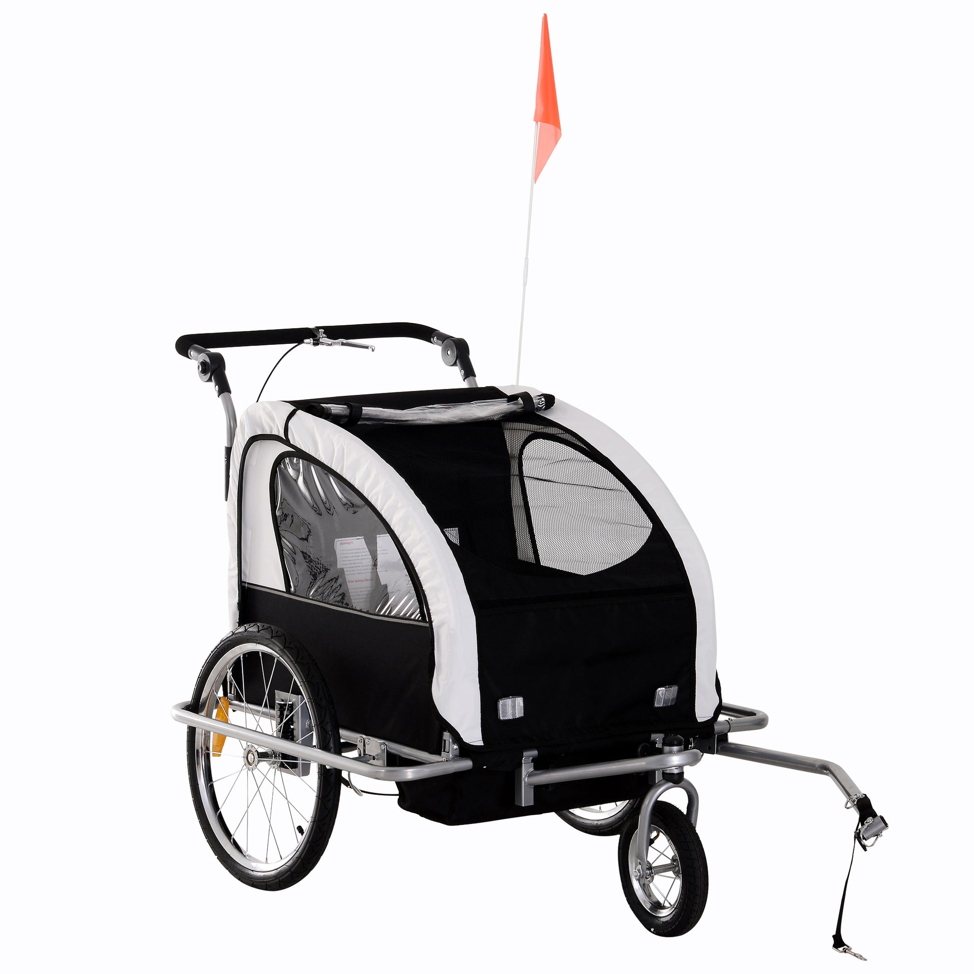 - Reflectors on wheels, raise flag and hand brake system are included in the child bike trailer