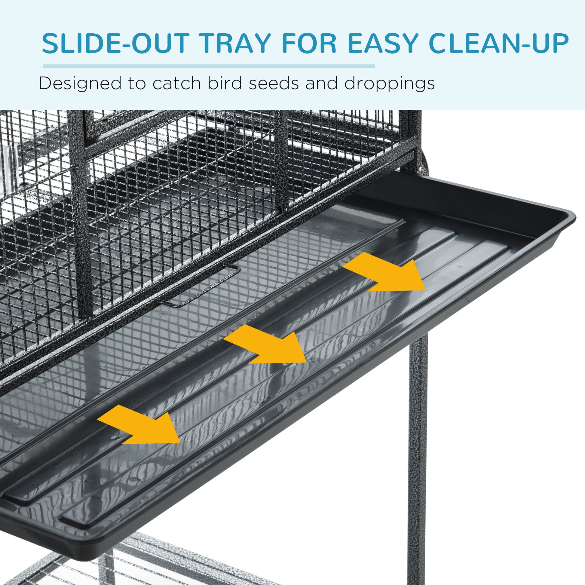 Bird Cage Metal Canary Cages for Parakeet with Detachable Rolling Stand, Storage Shelf, Wood Perch, Food Container