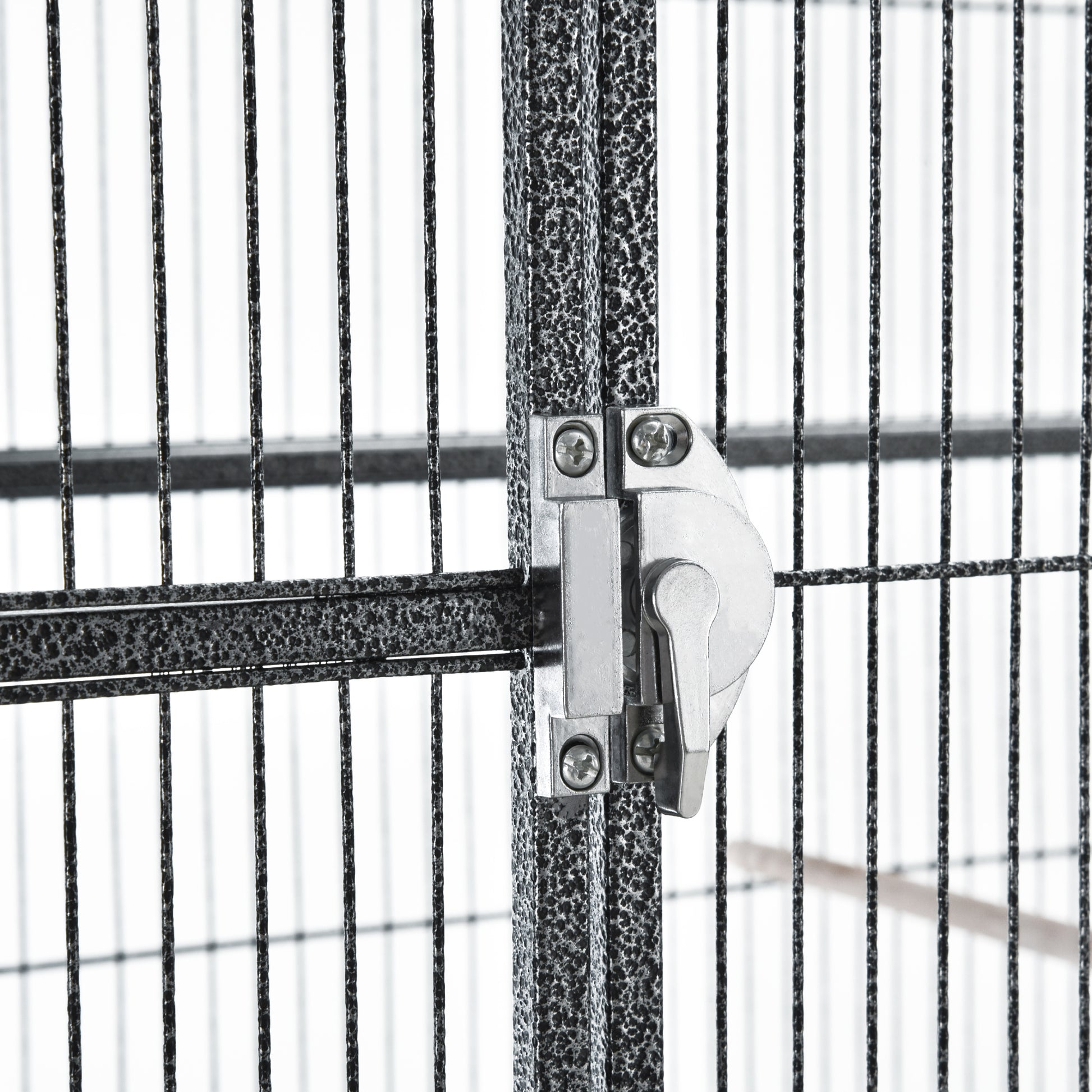 Need a secure home for pets? This PawHut canary cage is the solution. Enough space to spread their wings, they'll have a choice of perches to rest on. Plastic containers inside for access to food, Whilst the 7 doors make it simple to get in the cage, ensuring they have enough food and water. Pull-out tray at the bottom for quick cleaning, keeping their space tidy. A stand underneath with four wheels for easy movement. The cage is detachable from the stand, suitable for smaller spaces.