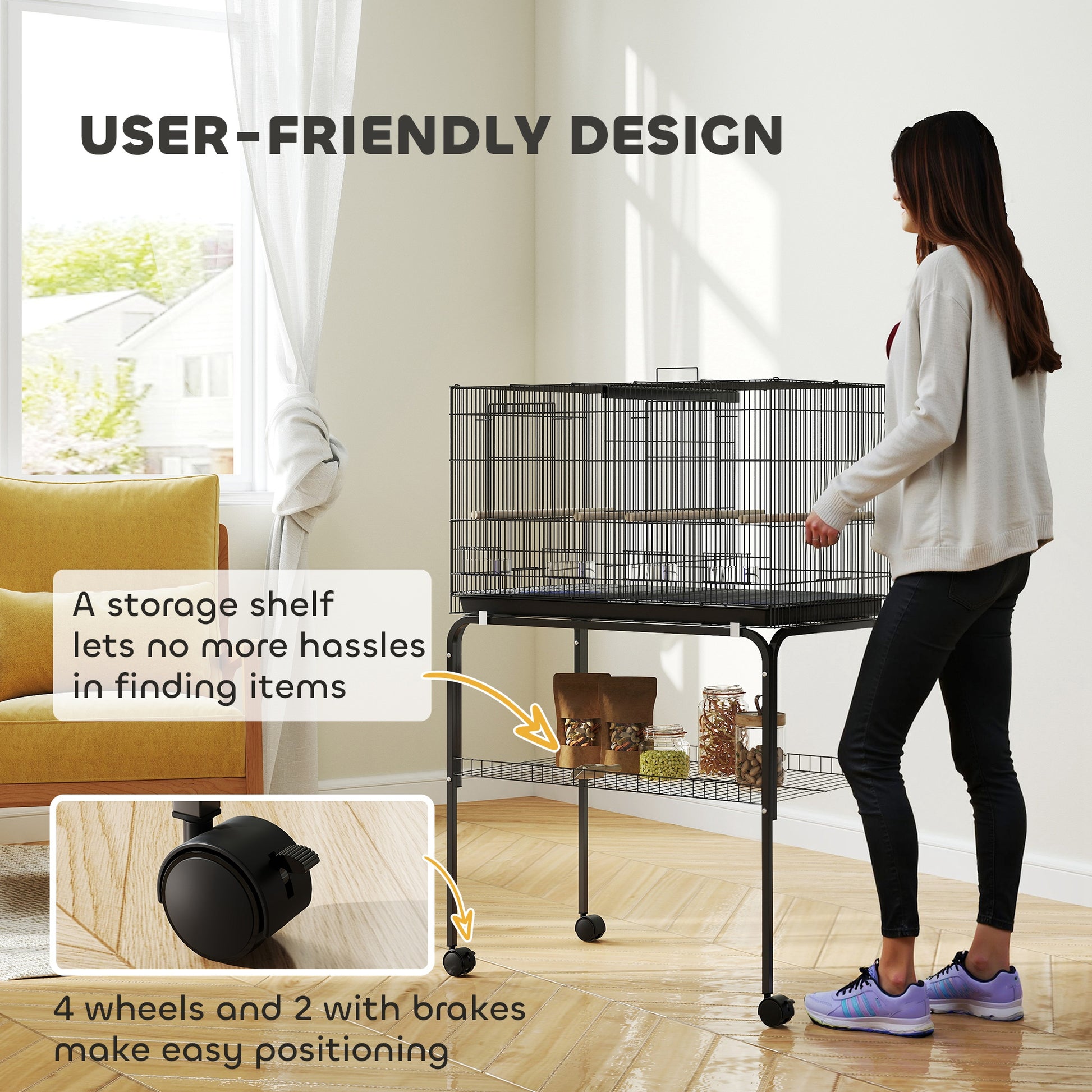 Bird Cage with Divider, 4 Wooden Perches, Slide Out Tray, Black