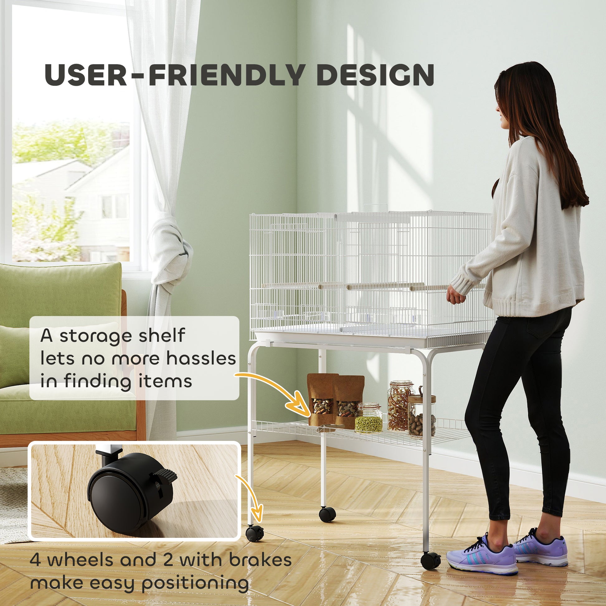 Bird Cage with Divider, 4 Wooden Perches, Slide Out Tray, White