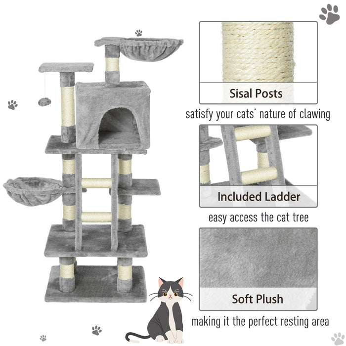 Plush Cat Tree, 125cm Cat Scratching Post for Indoor Large Cats with Hammock and Condo Activity Center Grey