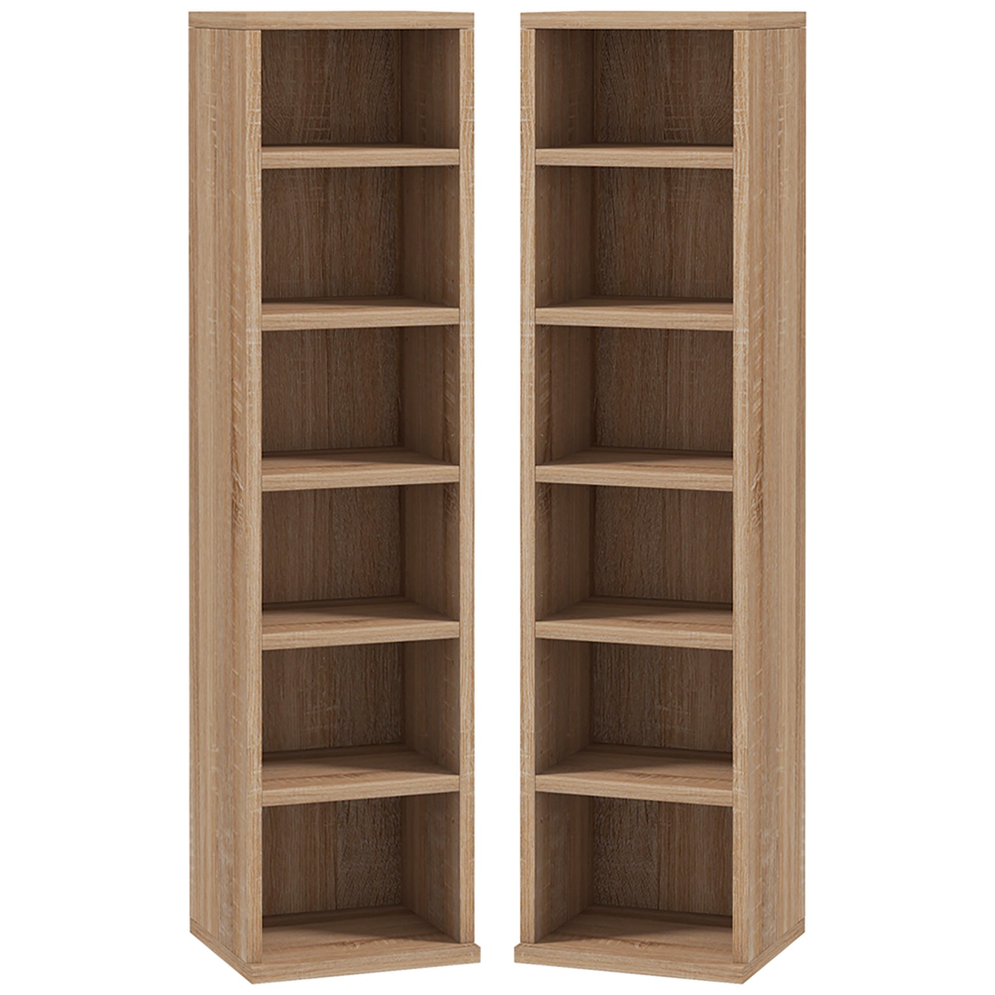 Display your coveted CD and digital media collection with pride - opt for this set of two shelves from HOMCOM. A six-compartment design, each unit can hold up to 102 CDs, giving you plenty of room for keeping everything together in a place. Made from particle board, the structure is solid and durableand comes with wall fixing straps on the back, so it doesn't fall over - making it safe for all homes. Double the organization for a tidy and matching home.