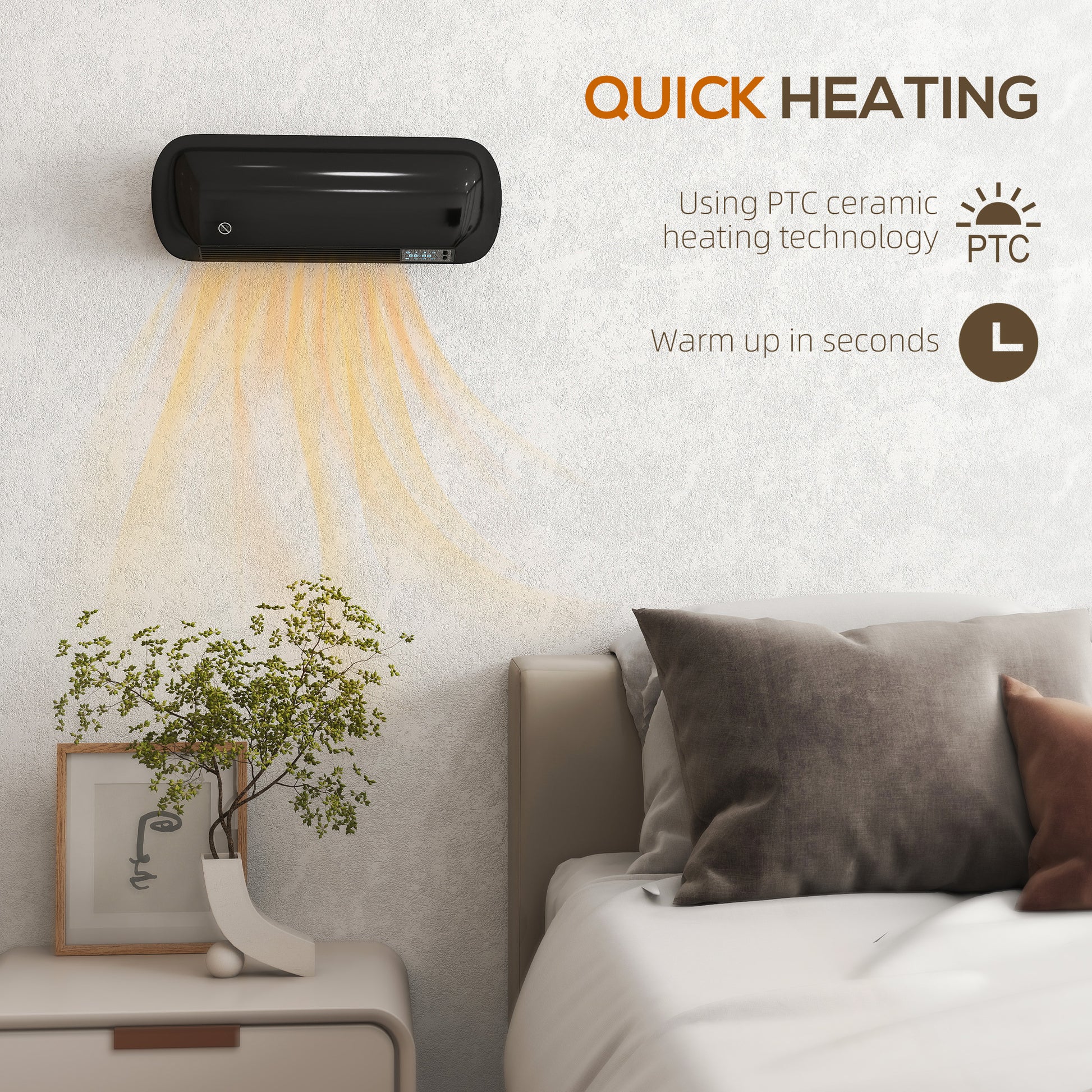 Ceramic Electric Heater 2000W with Fan, Wall Mounted, Black