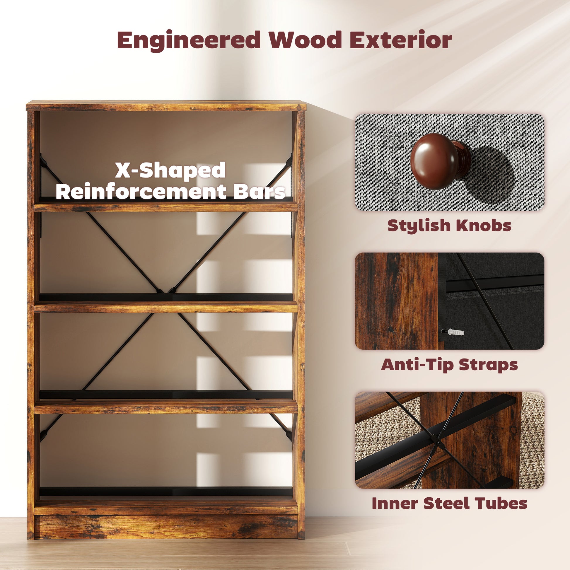- Includes anti-tip straps for extra security