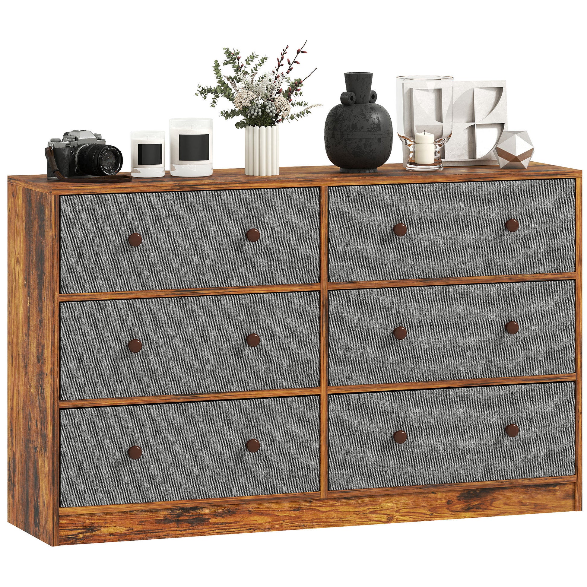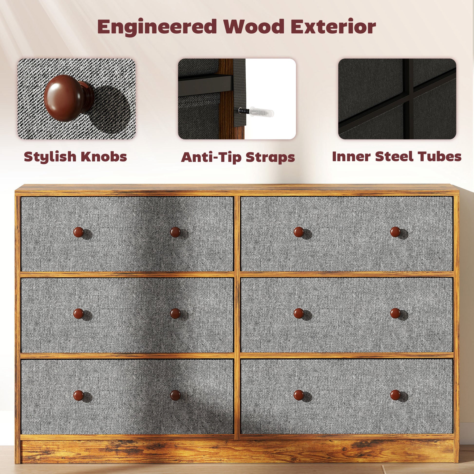 Chest of Drawers, 6 Drawer Dresser for Bedroom, Grey and Rustic Brown
