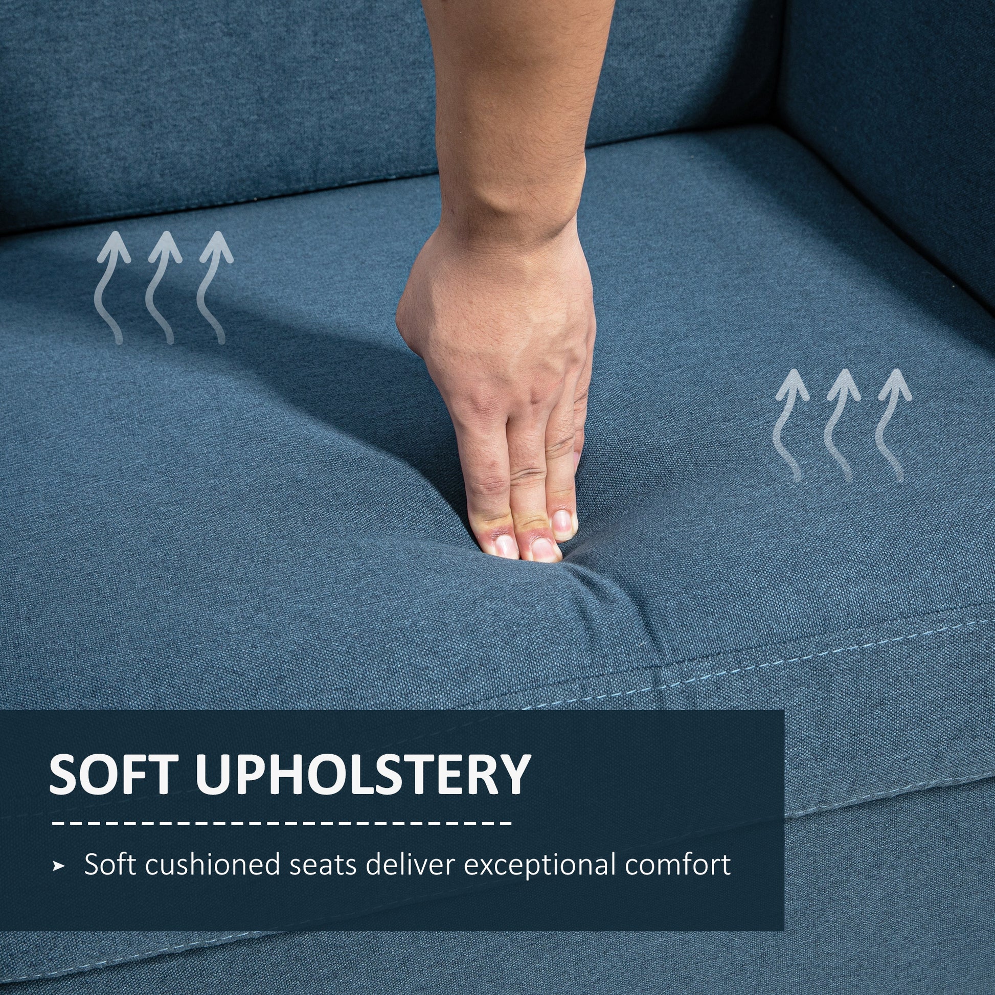 Compact Loveseat Sofa, Modern 2 Seater Sofa for Living Room with Wood Legs and Armrests, Blue