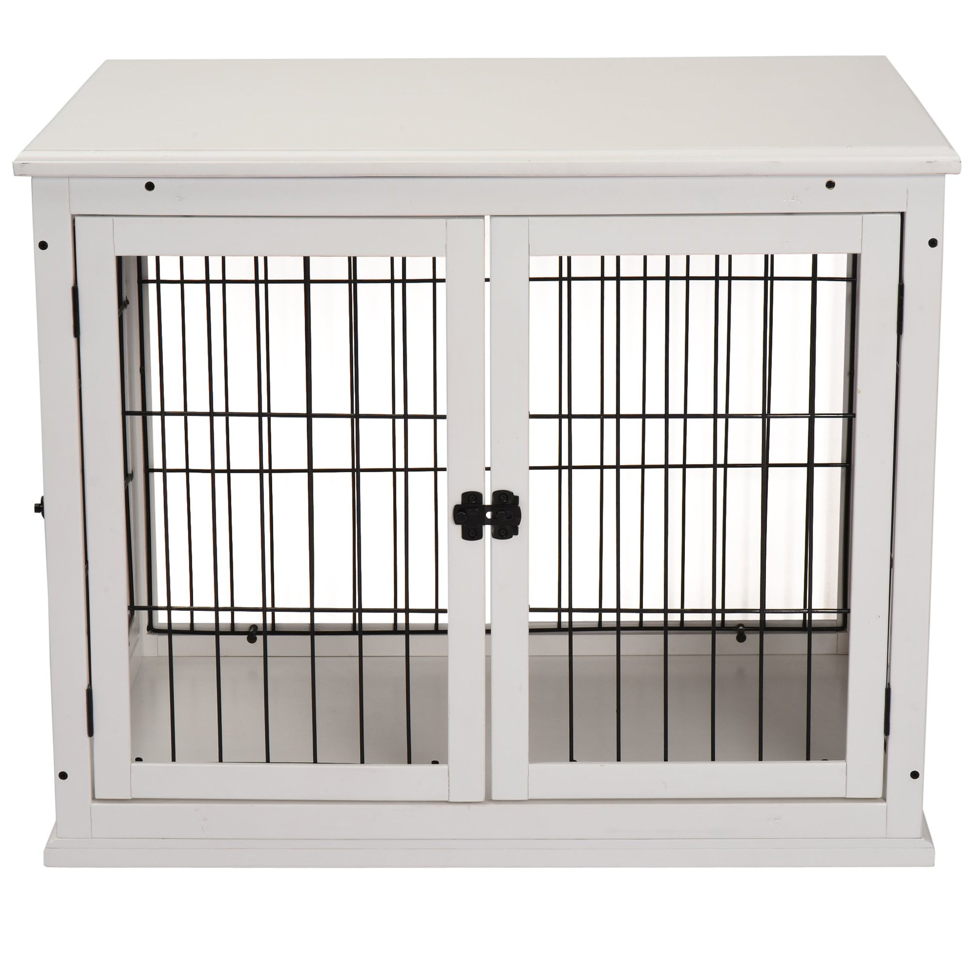 Keep your pet safely enclosed in something which is perfectly placed with the surroundings, thanks to this dog crate furniture from PawHut. Using MDF for a durable and reliable frame, the indoor dog kennel is fitted with wire all around to keep your pet safely enclosed. A spacious interior of this dog crate is finished with two doors, allowing easy access in and out.