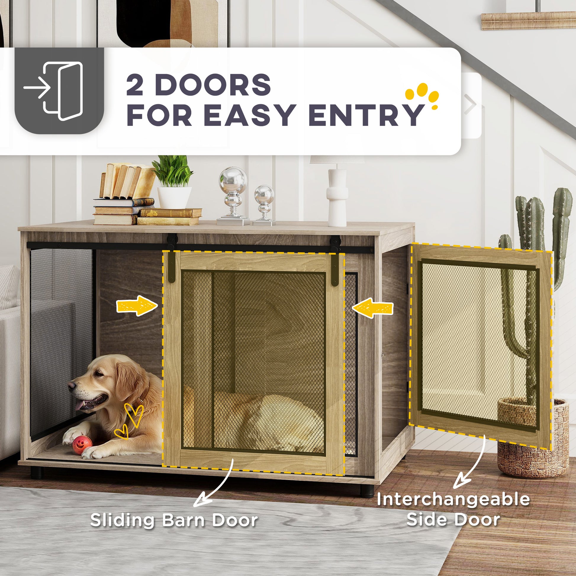 Discover the versatile Dog Crate Furniture, where functionality meets style! Use it as a cosy dog crate or a chic side table its particleboard and fine mesh grid design keep your furry friend from chewing. Boasting a dual-door setup, including a stylish barn door, this piece ensures comfort with a three-sided ventilation system and spacious interior for extra large dogs.Specifications