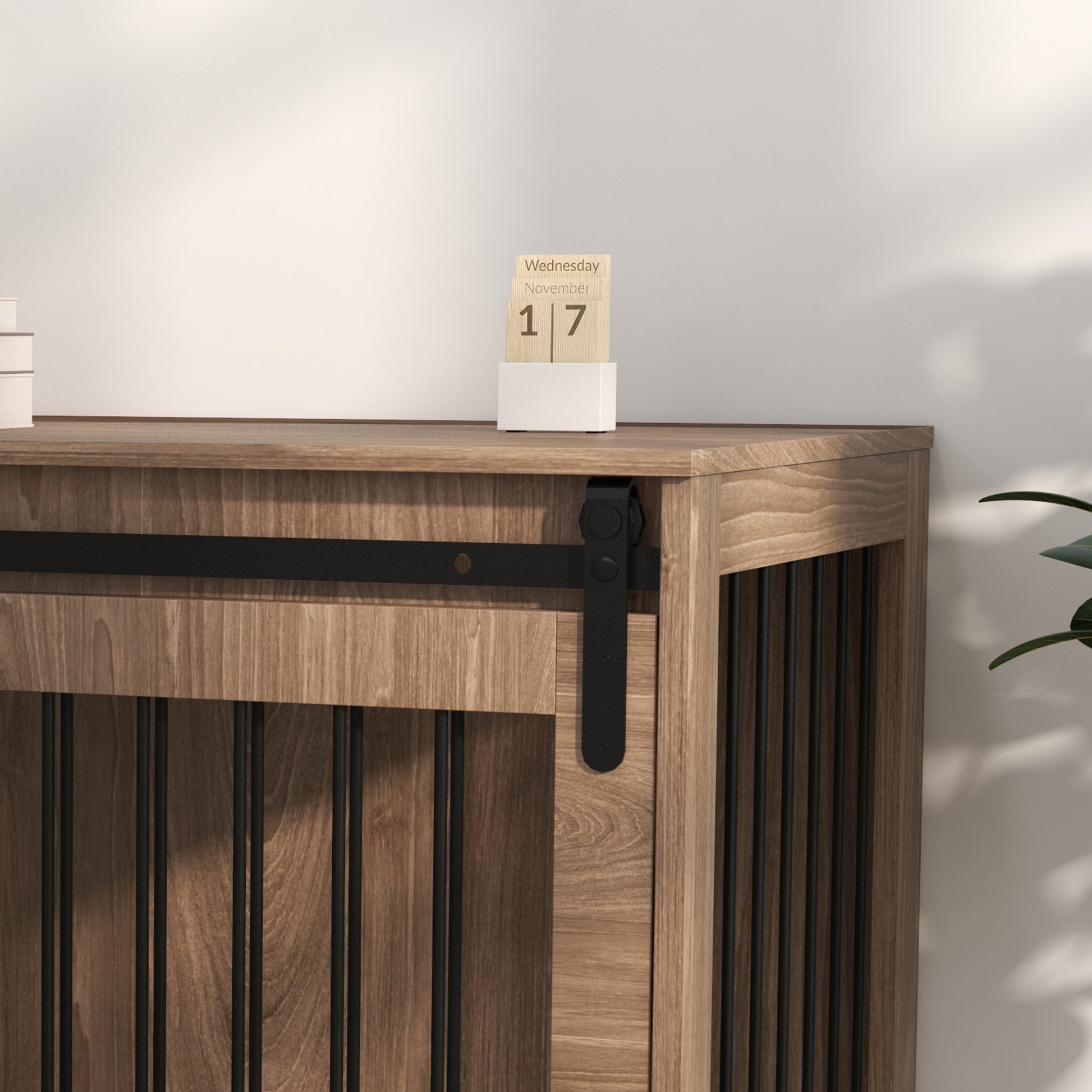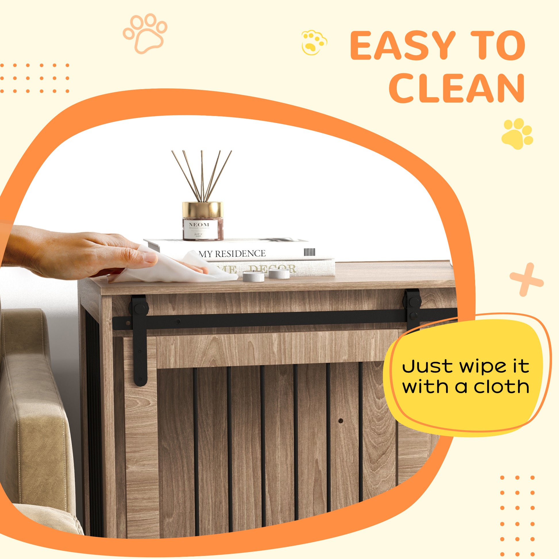 - Sturdy and safe: Made from particle board and steel, this dog crate furniture is strong and durable – suitable for daily use. A single sliding door for easy access, with a latch to keep pets securely inside when needed.
