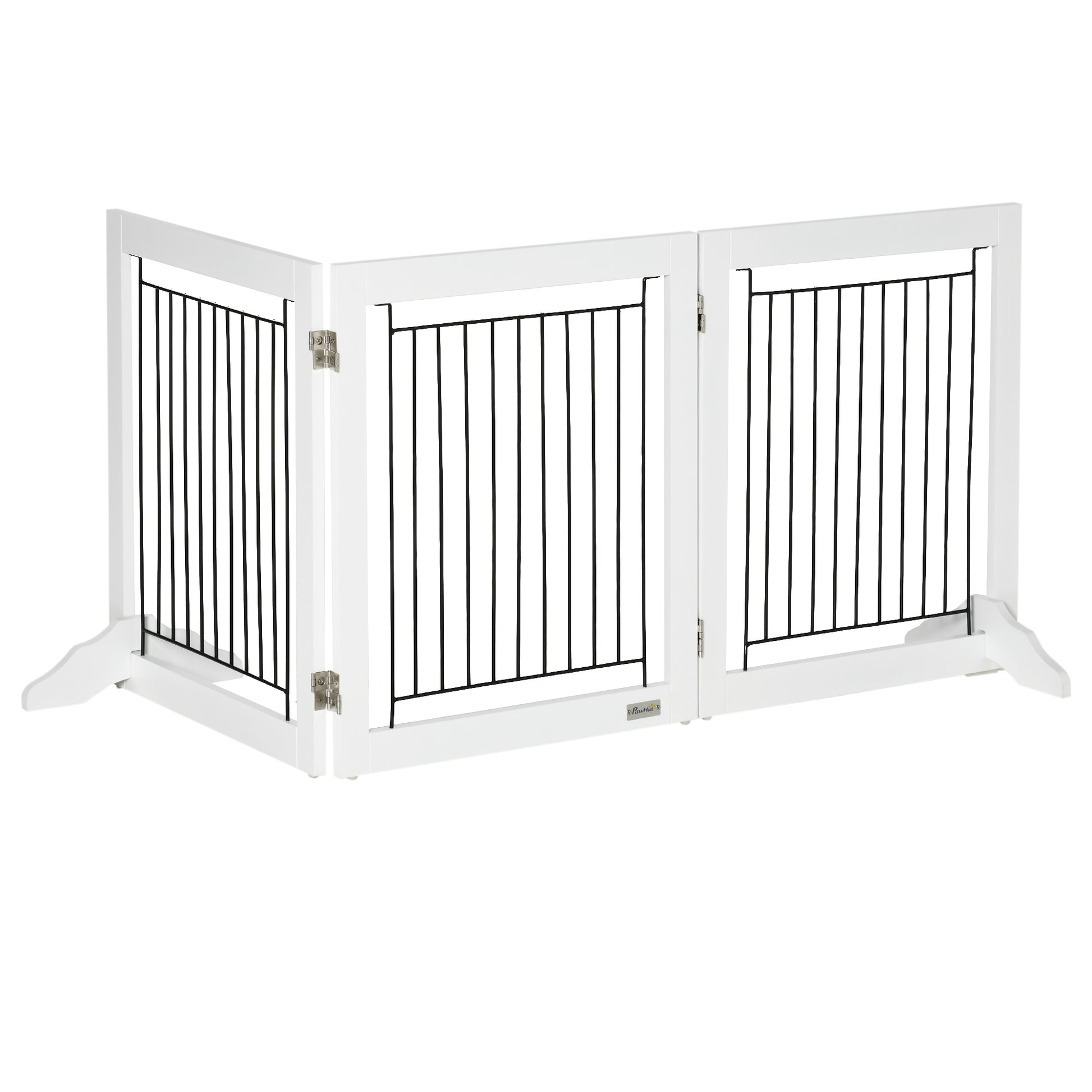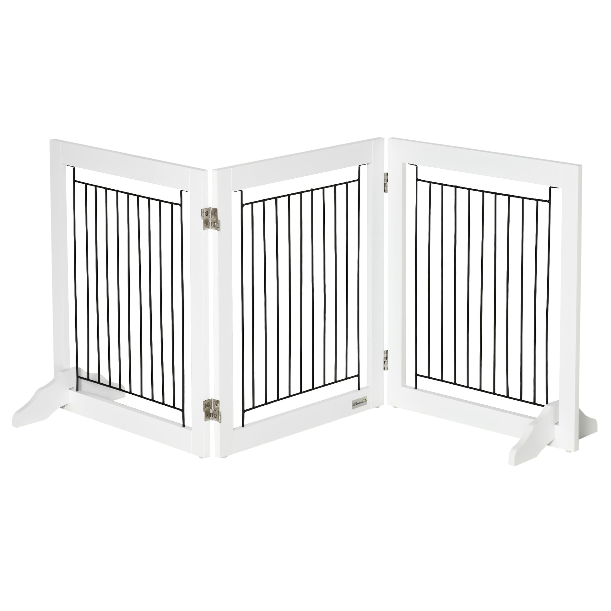 Dog Gate, Freestanding Pet Gate, Wooden Puppy Fence Foldable Design with 61 cm Height 3 Panels, 2 Support Feet, for House Doorway Stairs White