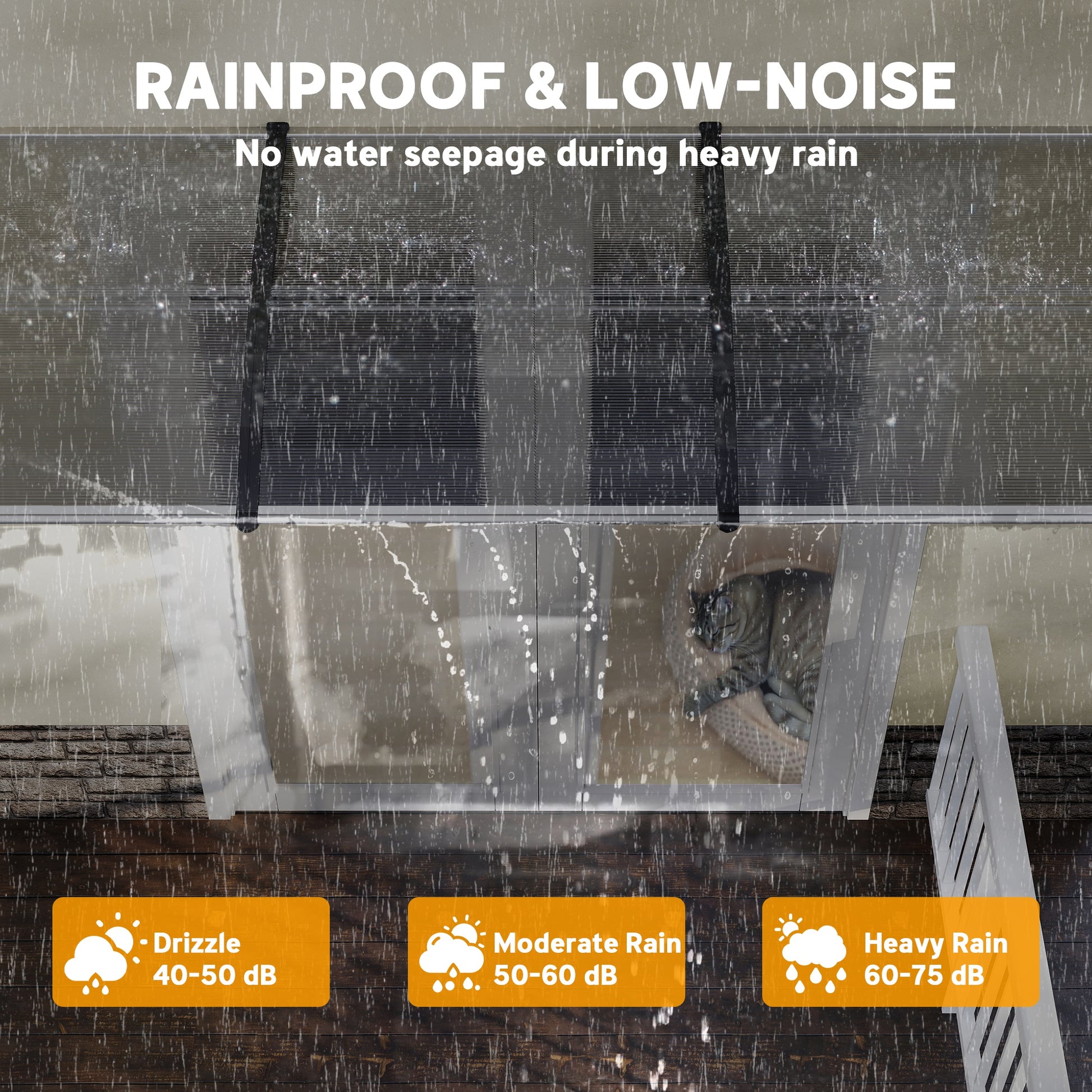 Keep the elements away from your doors and windows, all year long with this door canopy. Curved shape covers a larger area, whilst preventing any build-up on the end half. The aluminium frame is strong so it holds on placeit can be easily mounted on the wall with all required accessories included in the package. Each panel features a UV-resistant coating for protection against damaging rays - whether it's sunny, gentle snow, moderate breeze or light-medium rainy.